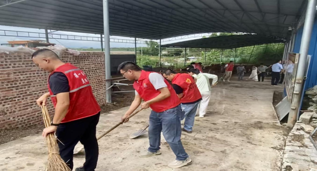 随后,黄福隆一行还参观了易和村肉牛养殖基地,和村“两委”干部共同开展清扫牛舍志愿服务活动,对养殖场道路及牛舍进行清扫,清理道路两旁的杂草和垃圾,为肉牛养殖创造良好的卫生环境,同时还就村集体经济发展情况现场进行深入交流,了解产业动态,提出对策建议。