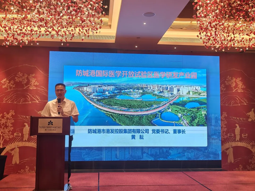 同期,由中国保健协会、防城港市港发控股集团有限公司联合主办第22届中国国际保健博览会暨推介交流会在厦门日航酒店举行,本次推介吸引中国医药物资协会、国控星鲨药业、京东健康、片仔癀、归真堂等近60名企业代表参加。黄耘重点向参会代表推介了防城港区位、政策、产业发展等优势,以及防城港国际医学开放试验区独有的政策和集团公司的园区招商、产业布局等情况,诚挚邀请各企业到防城港国际医学开放试验区投资兴业,共享发展机遇。