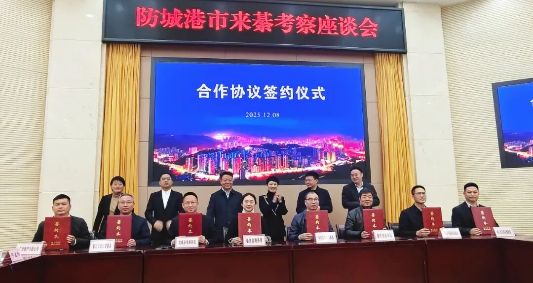 在防城港綦江区双地座谈会上,黄耘同志代表市港发集团与重庆南州农文旅发展集团签订战略合作协议。旨在依托港发集团在国家级渔港经济区、东盟水产品货源渠道和热带水果等方面的资源优势,及南州农文旅发展集团在成渝地区双城经济圈核心腹地的区位与消费市场、农产品区域品牌建设、冷链仓储、物流配送等先天优势,充分发挥防城港市作为中国面向东盟的“桥头堡”和西部陆海新通道的重要枢纽及綦江区作为渝黔合作先行示范区对贵州市场辐射能力。