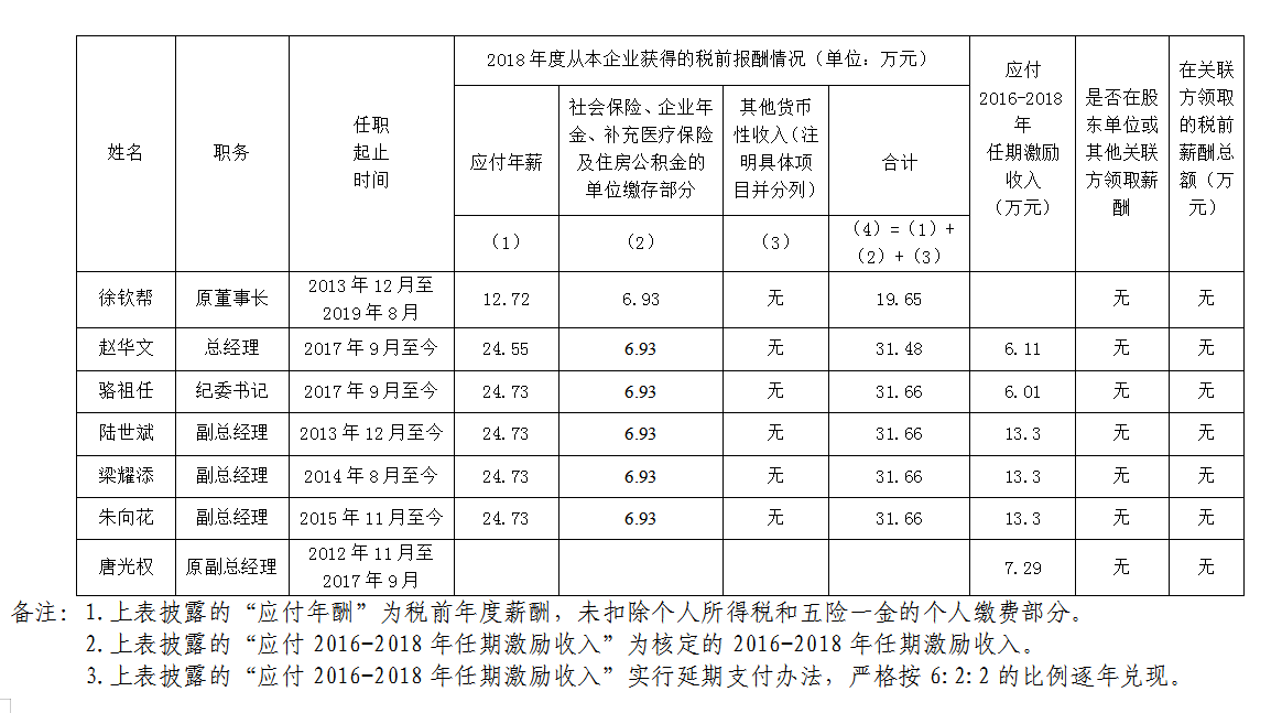 2018年度防城港市港发控股集团有限公司(原防城港市港工基础设施建设开发投资有限责任公司)企业负责人薪酬信息披露