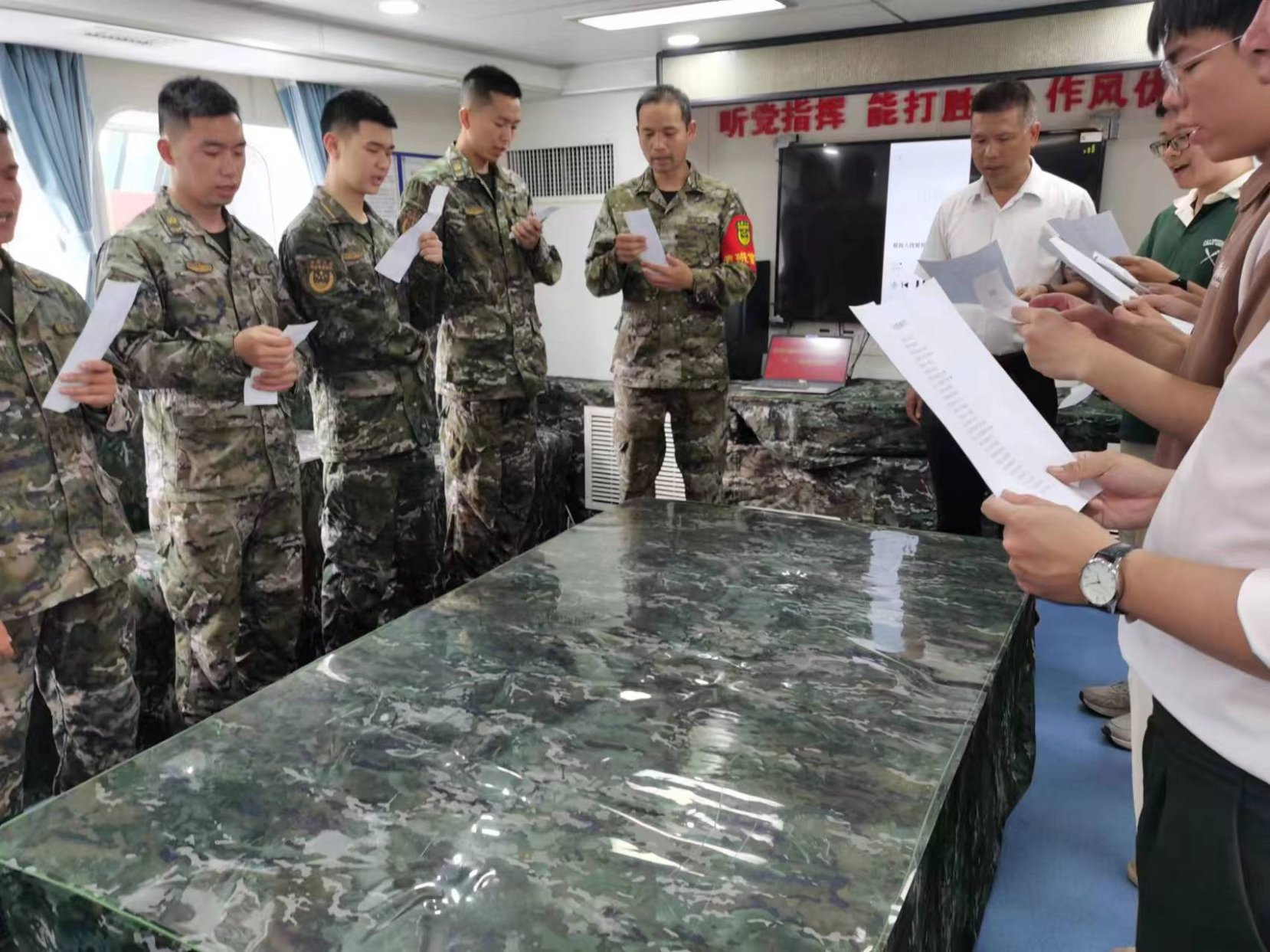 为庆祝中国人民解放军建军97周年,大力弘扬拥军优属、拥政爱民的优良传统,进一步巩固和发展军政军民“同呼吸、共命运、心连心”,营造共建的浓厚氛围,7月29日下午,市工业和信息化局党组成员、副局长吴如兴带队前往防城港海警局22513艇开展八·一“情系边海防”慰问活动,向海警部队致以节日的问候和祝福,并送上慰问品。同时,与海警部队共同学习党的二十届三中全会精神,并一起合唱双拥主题曲——“爱我人民爱我军”。