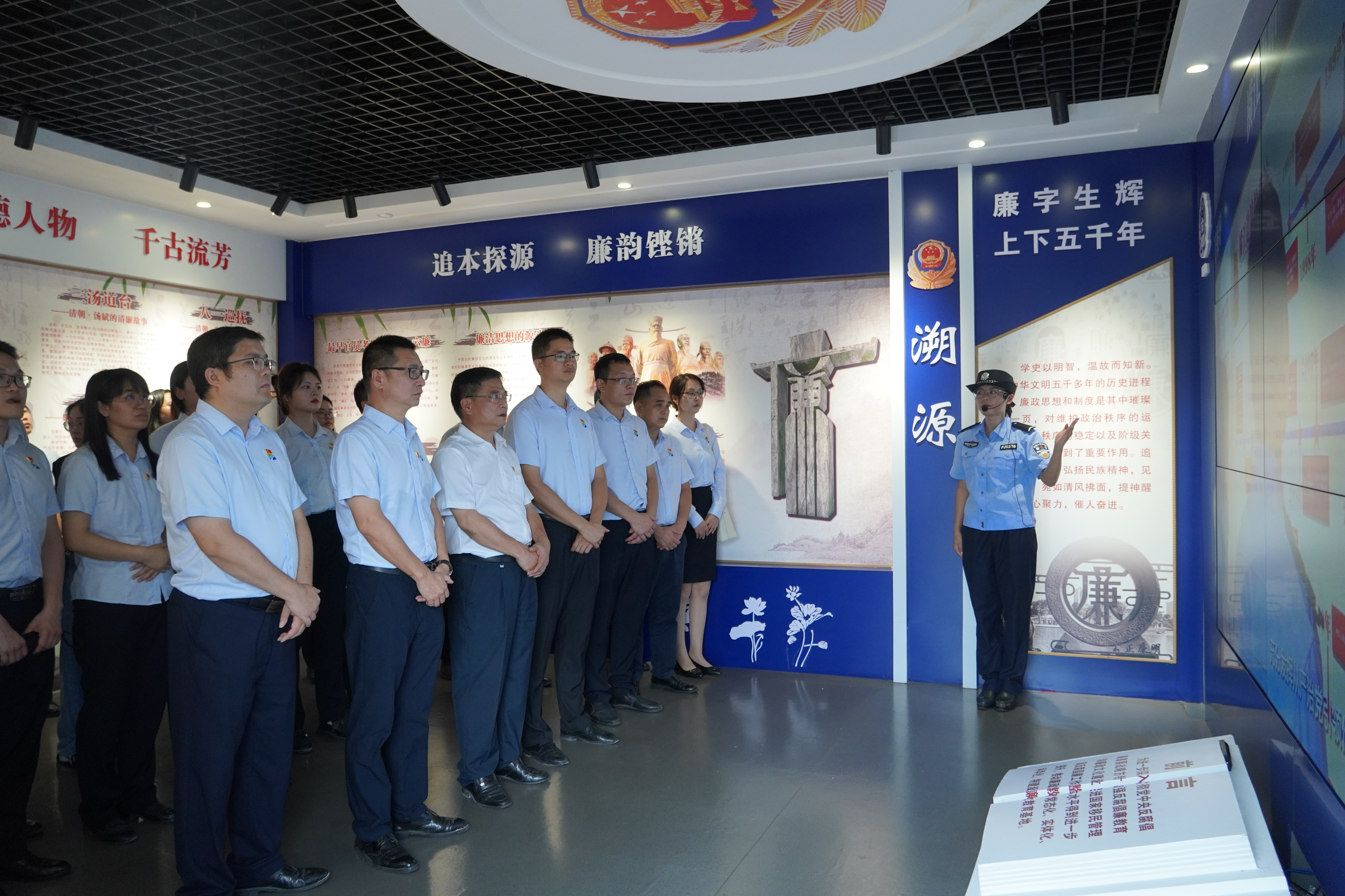 廉政文化展厅展示了中国源远流长的廉政文化历史,横江边境检查站大事记及所获荣誉,英模榜样风采等,寓意深刻的画面、形象生动的文字给参加活动的党员上了一堂生动的党课。大家认真聆听工作人员的讲解,感受古代清官廉吏、近现代英模榜样“廉政勤政、爱民为民”的思想和“以法养廉、以廉养德”的道德理念,警示党员要时刻把廉洁铭记在心中,树立底线意识。