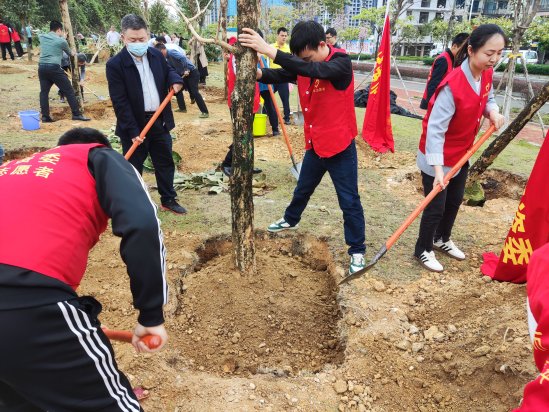 3月15日,为践行“绿水青山就是金山银山”理念,进一步培育和践行社会主义核心价值观,大力弘扬雷锋精神和志愿精神,推动形成我市国资崇尚志愿服务、热心志愿服务的良好风尚,市国资委志愿服务队在防城港市园博园南区开展“义务植树,绿满港城”志愿服务活动。