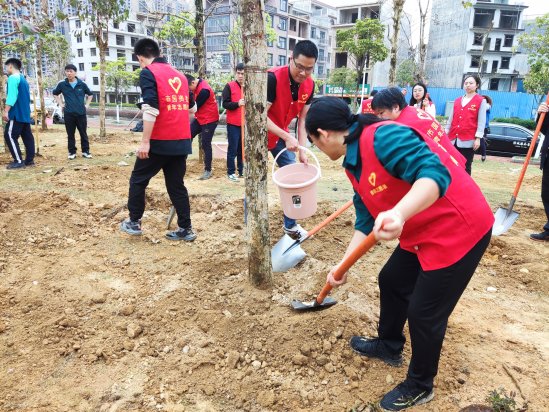 活动现场,委机关志愿者们分别行动,扶树定位、挥锹填土、浇水施肥,各个环节衔接有序,大家互帮互助、默契配合地栽下大花紫薇、宫粉紫荆等树木,为园博园增添了新绿,增添了勃勃生机。