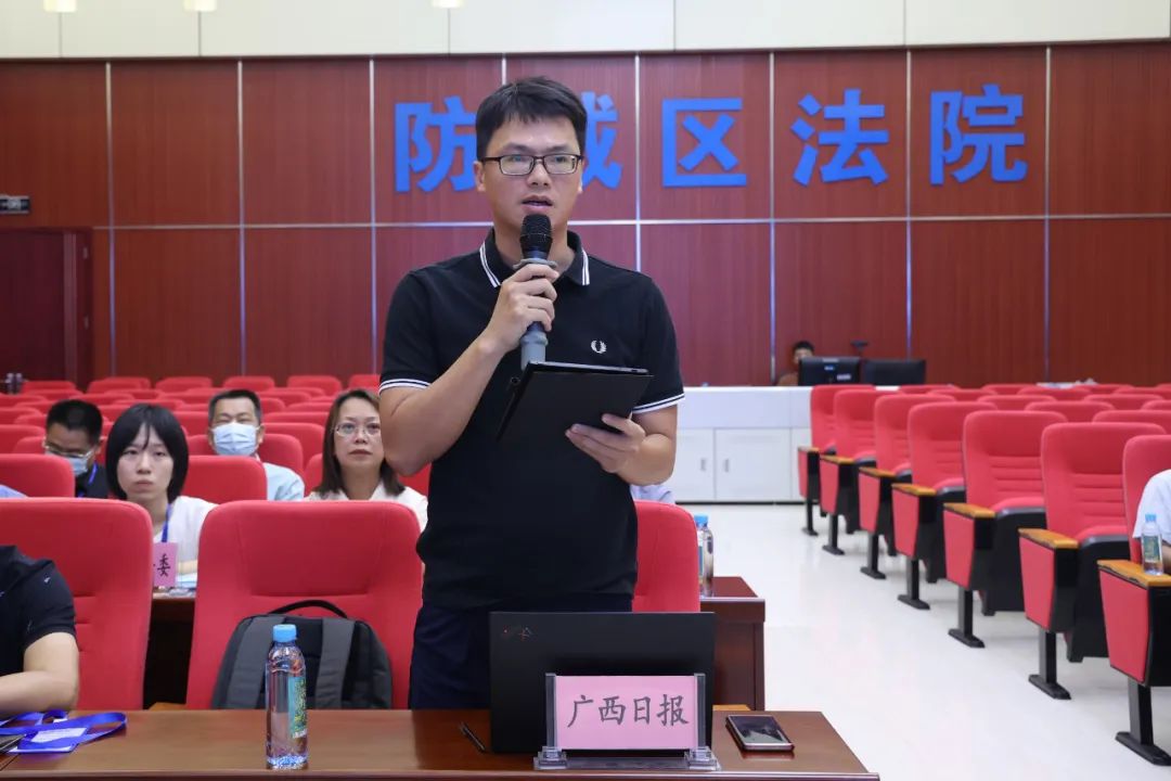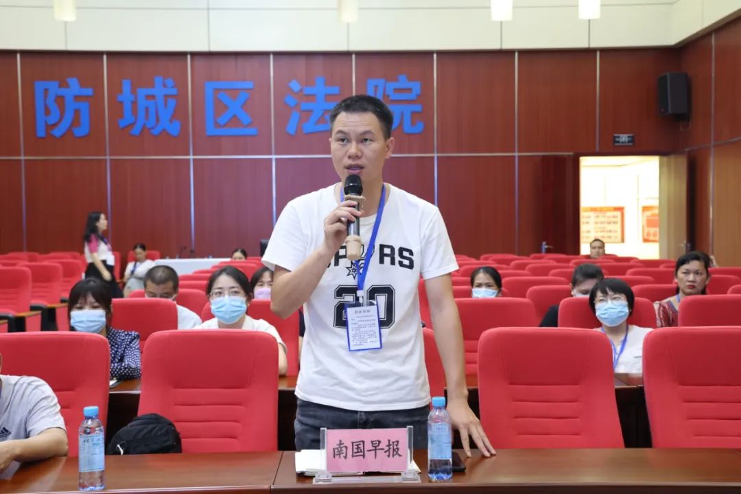 参加今天发布会的新闻媒体有:广西日报、广西法治日报、广西新闻网、南国早报、防城港日报、防城港市电视台、防城港发布、防城区融媒体中心等媒体记者。