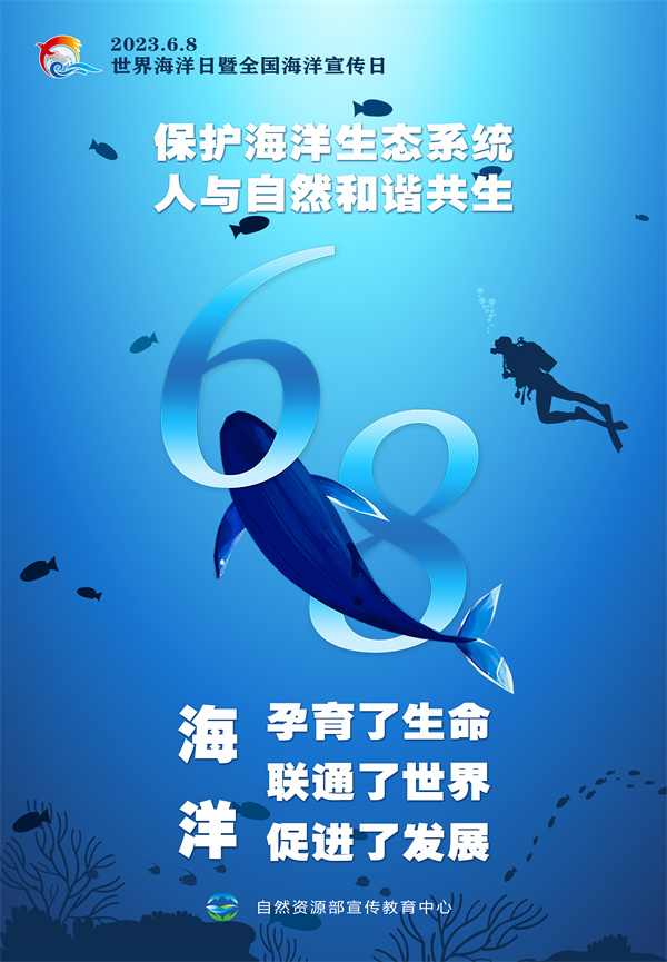 2023年6月8日是第十五个世界海洋日和第十六个全国海洋宣传日,活动主题是“保护海洋生态系统 人与自然和谐共生”。