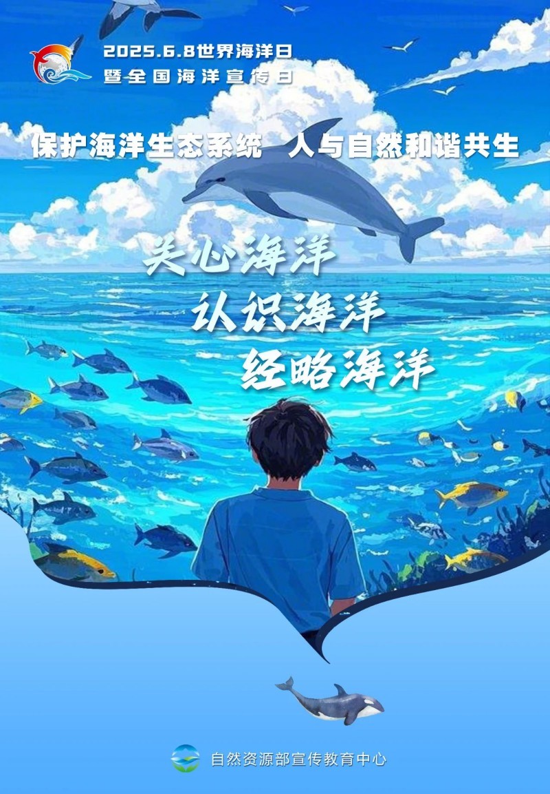 2025年6月8日是第17个“世界海洋日”和第18个“全国海洋宣传日”,活动主题是“保护海洋生态系统 人与自然和谐共生”。自然资源部宣传教育中心策划制作了宣传海报,供各地下载传播。
