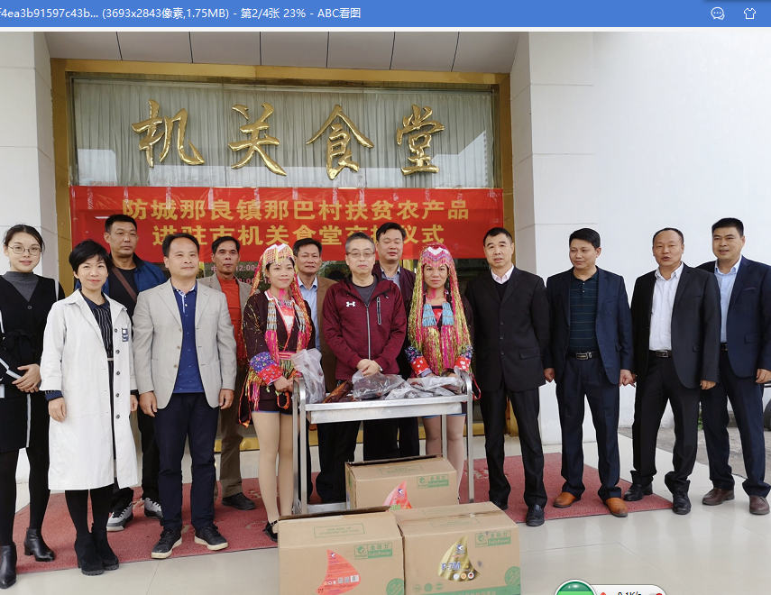 防城区那良镇那巴村扶贫农产品进驻机关食堂交接仪式,欧阳进常委(右7)出席。