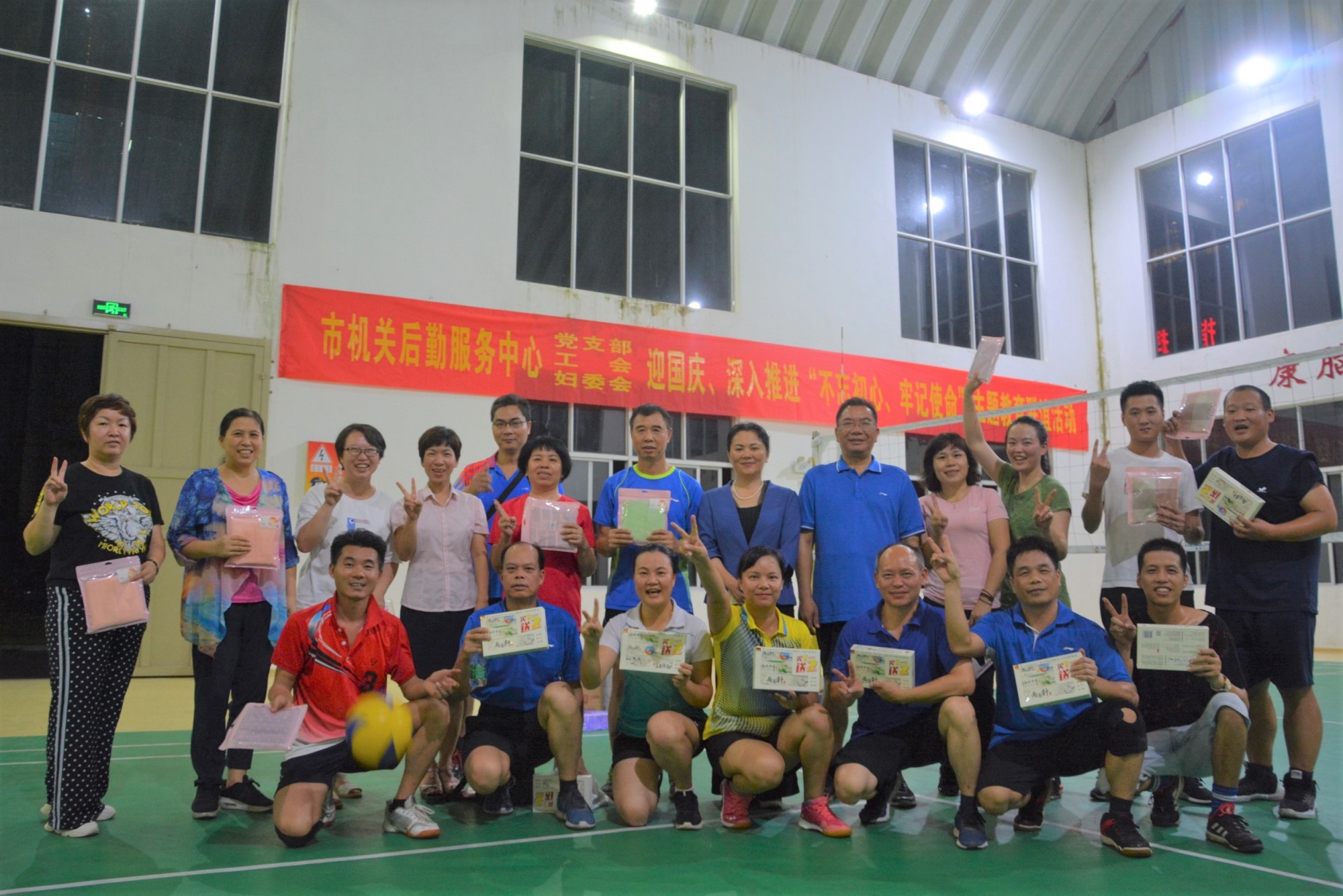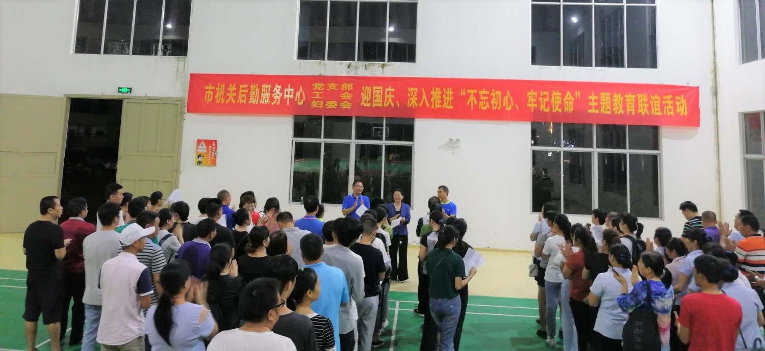 2019年9月17日晚上,市机关后勤服务中心党支部、工会、妇委会在武警防城港支队机动中队训练馆联合开展了迎国庆、深入推进“不忘初心、牢记使命”主题教育联谊活动,此次活动以庆祝中华人民共和国成立70周年、深入推进“不忘初心、牢记使命”主题教育为主题,旨在全面推动中心文化建设、增进科室间交流,展示干部职工健康向上、团结合作和善于攻坚克难的精神面貌。中心全体工作人员参加了活动。