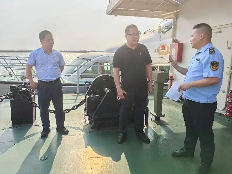 最后,全体人员来到竹山港码头趸船停靠处,详细了解趸船和巡航船在守护界碑、维护航道等方面的作用。