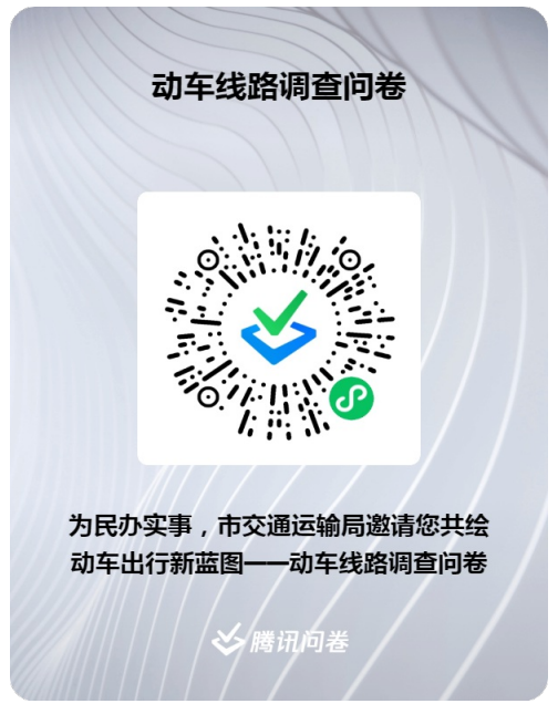 我市正积极推进动车班次优化工作,为确保优化方案精准匹配我市市民需求,现开展问卷调查活动。本次问卷调查将广泛收集市民对热门线路、班次增设等需求的数据,请广大市民积极填写调查问卷,为下一步防城港市开行更多列车提供数据支持。
