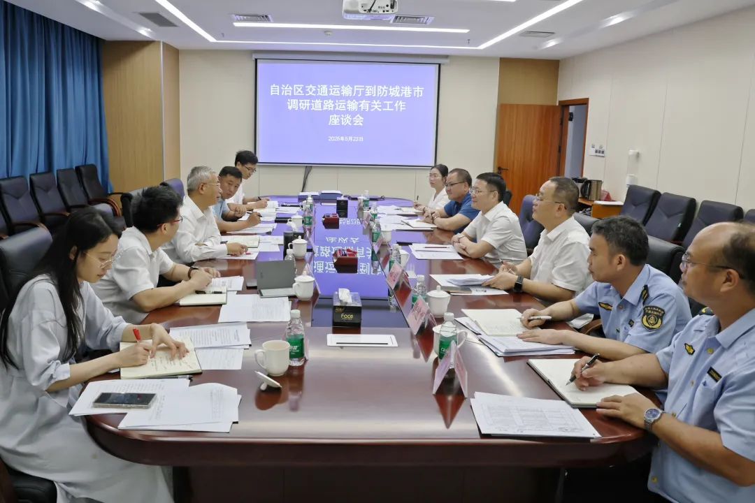 5月23日,自治区交通运输厅党组书记、厅长刘可率队到防城港市调研交通运输服务工作有关情况,并召开座谈会,就货车司机群体党建工作、驾驶员培训平台应用和物流运输企业运营管理等方面进行深入交流。防城港市副市长罗真陪同调研。