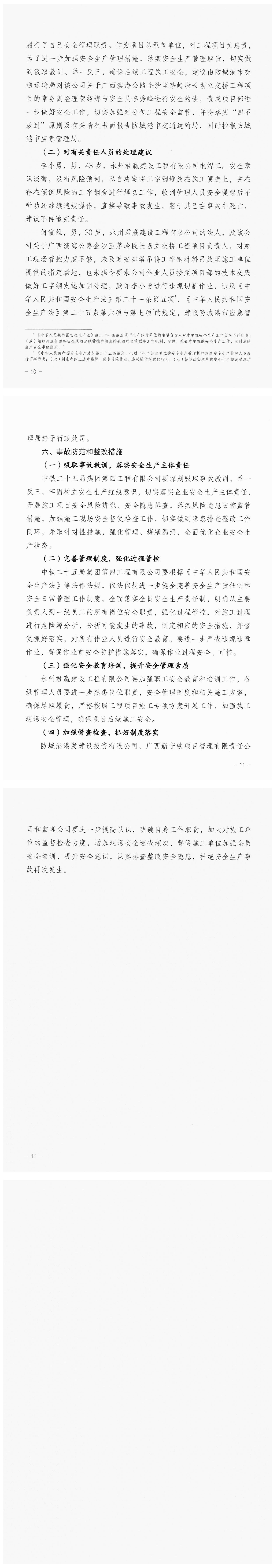 广西滨海公路企沙至茅岭段长坜立交桥工程项目“1·3”一般物体打击事故调查报告