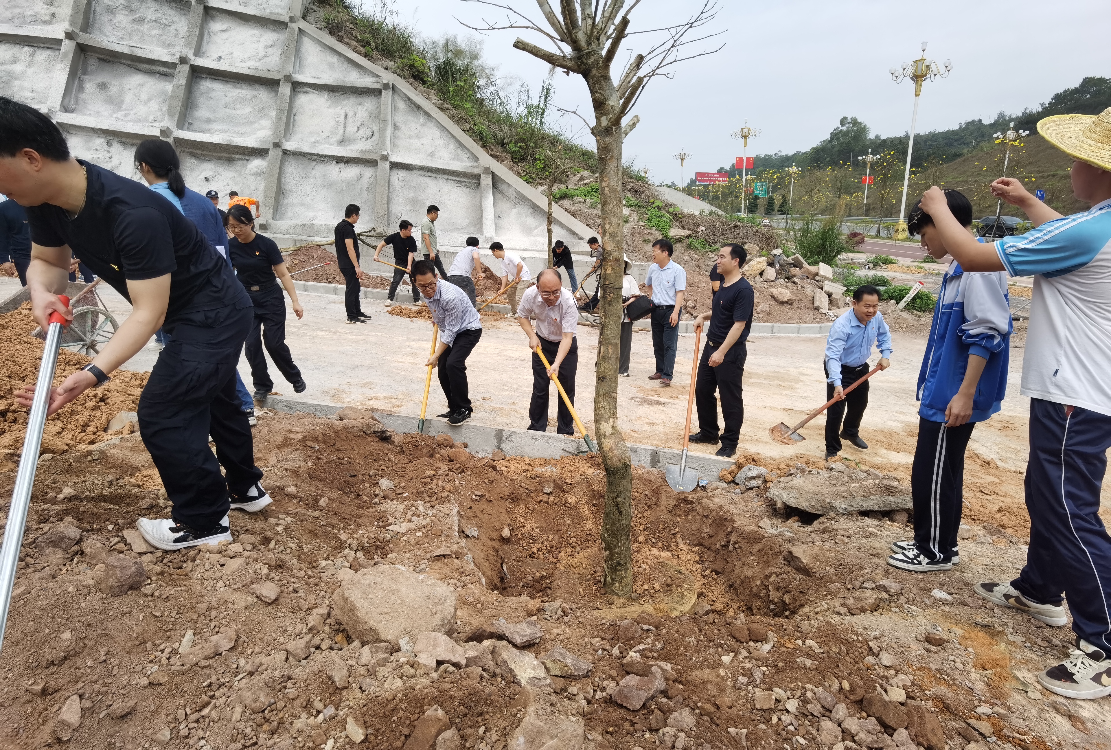 宣传活动结束后,各党支部及师生代表开展植树活动,种植了35株大叶紫薇。