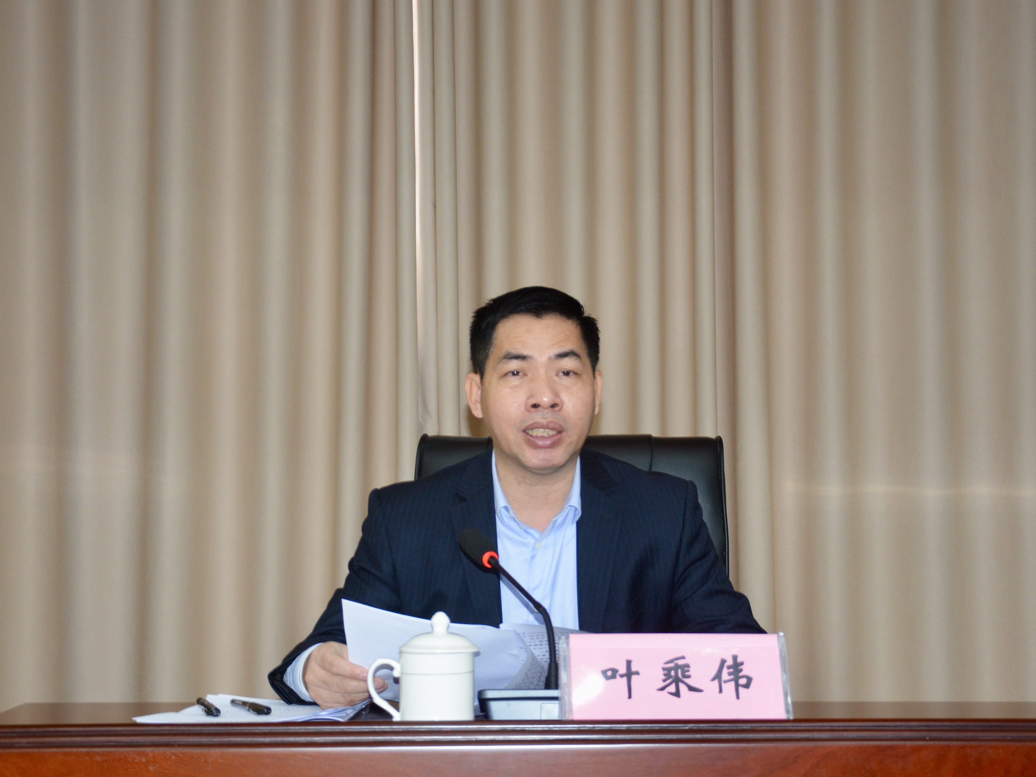 图为廖云副市长在全市林业工作会议上进行讲话发言