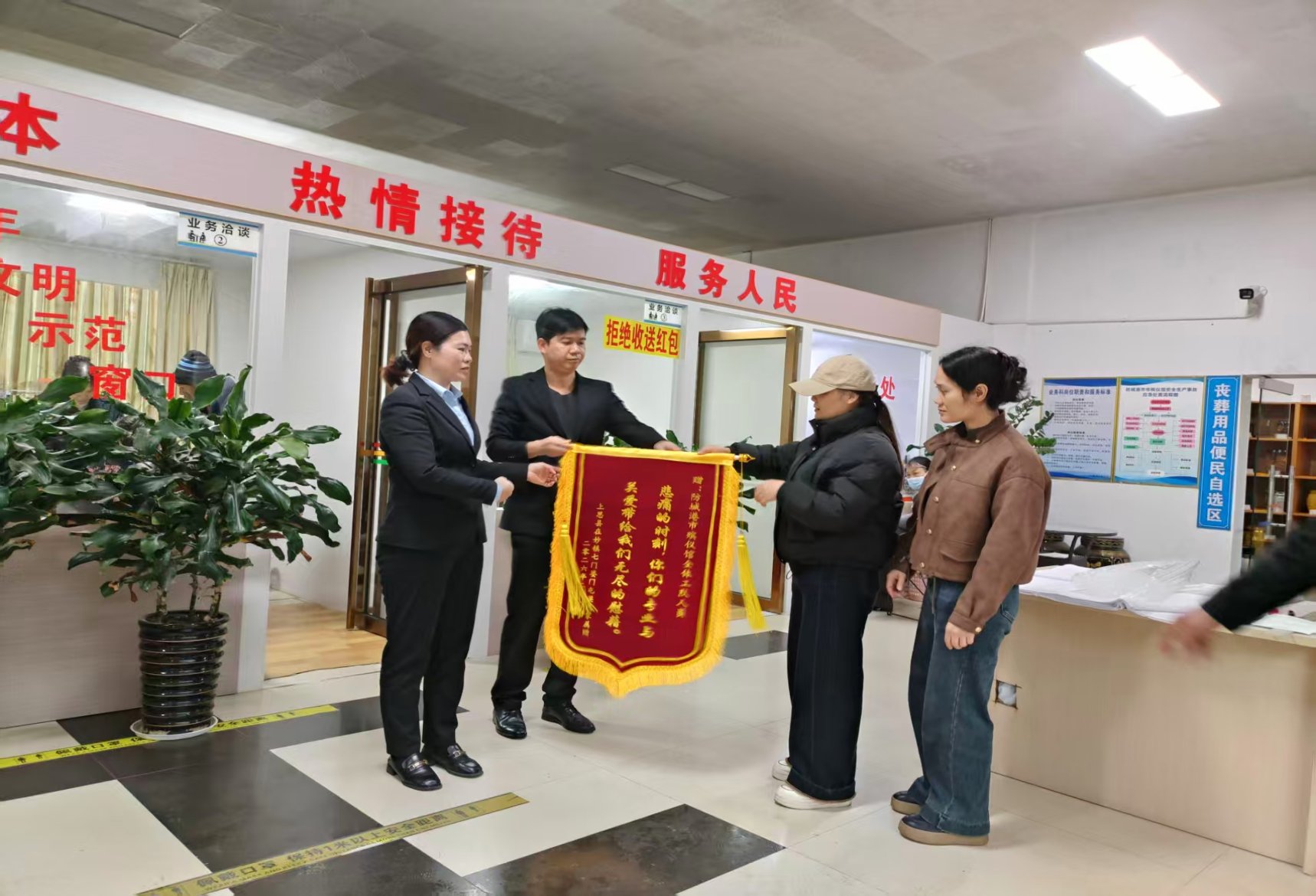 近年来,防城港市民政局始终坚持以党建为引领,深入践行“民政为民、民政爱民”工作理念,将殡葬服务改革作为民生保障的重要抓手。局党组高度重视殡葬领域民生工程建设,持续指导市殡仪馆在服务提质、管理规范、形象提升上精准发力,用心用情用力办好群众“身后事”,以有温度、有态度、有力度的优质服务,切实把民生实事办到群众心坎上。