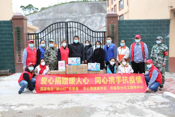 12月27日,防城港市益百分社会工作服务中心、心理健康学会、白沙万街道社工服务站通过自捐。发动爱心企业和人士募捐等方式筹集近10万元的矿泉水、防护服、医用口罩等抗疫物资,捐赠给我市一线疫情防控医务人员、敬老院、社会福利院等,充分体现了我市社会组织积极参与疫情防控工作的决心,发挥出“奉献、友爱、互助、进步”的志愿服务精神。