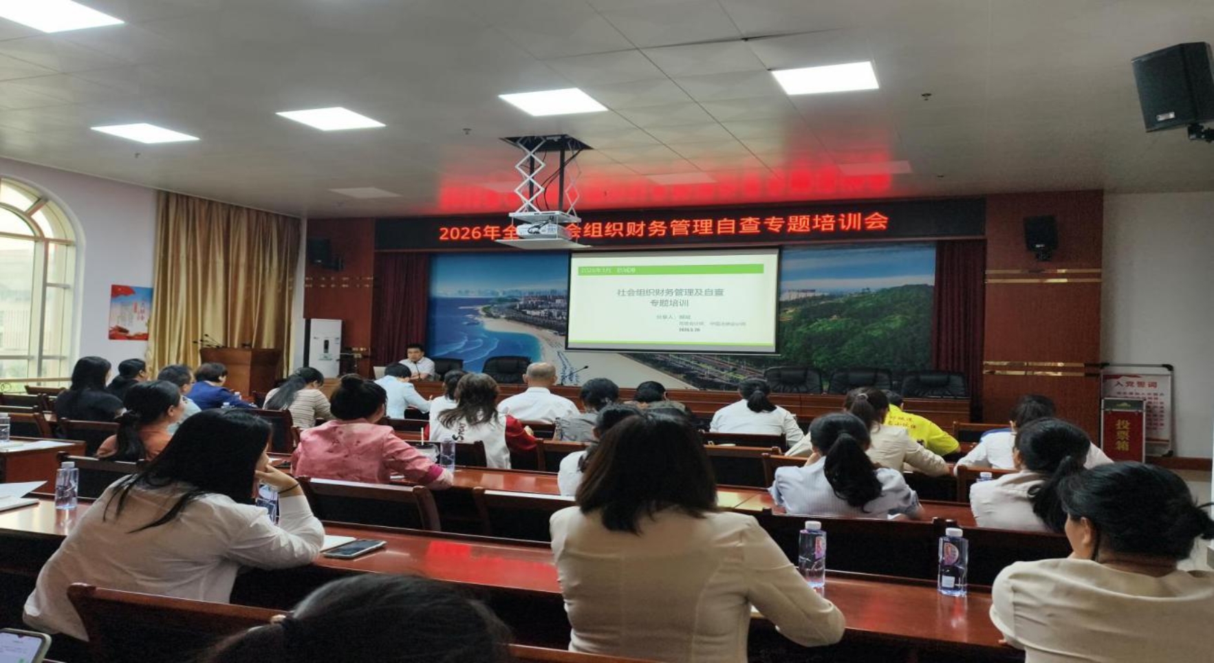 为进一步规范全市社会组织财务管理行为,强化自我监管意识,防范化解财务风险,3月26日上午,由防城港市民政局、防城港市社会组织孵化基地主办,防城港市弘远社会工作研究发展中心承办的“2026年全市社会组织财务管理自查专题培训”在市民政局三楼302会议室顺利举行。全市性社会组织法定代表人、财务负责人及各县(市、区)民政局监管工作负责人近50人参加培训。