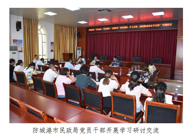 10月10日,防城港市民政局组织全体党员干部,围绕“不忘初心、牢记使命”主题教育“改革创新,扩大开放,加快推动高水平开放”专题开展集中学习研讨。
