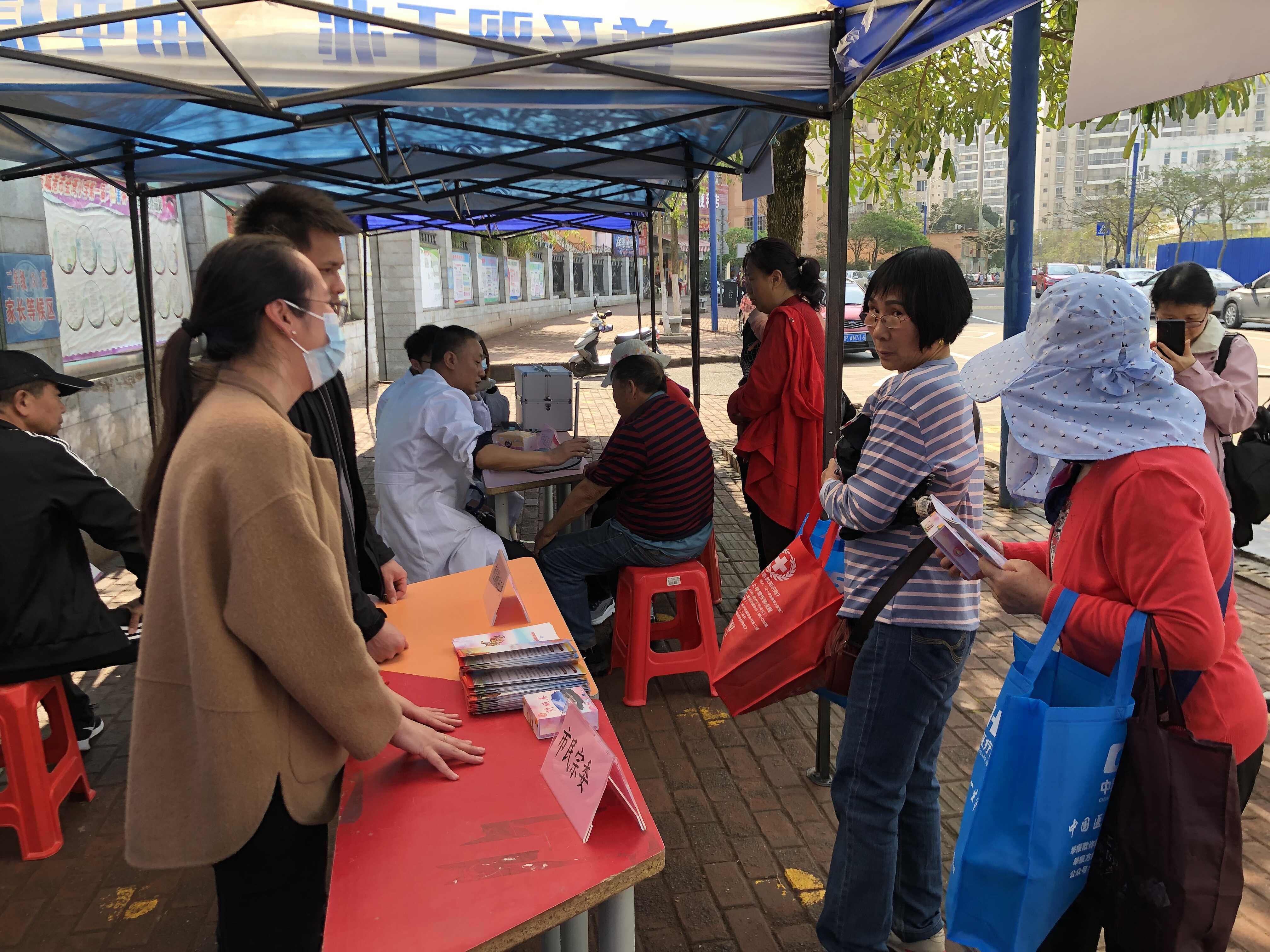 在港口区金湾小学,市民宗委志愿者们向金湾小学捐赠了一批体育器材,并在校门口周边向过往群众免费发放铸牢中华民族共同体意识宣传手册以及民族宗教政策法规知识问答等宣传资料,引导居民积极学习党的民族宗教政策,鼓励大家在日常生活中积极维护民族团结,共同铸牢中华民族共同体意识。