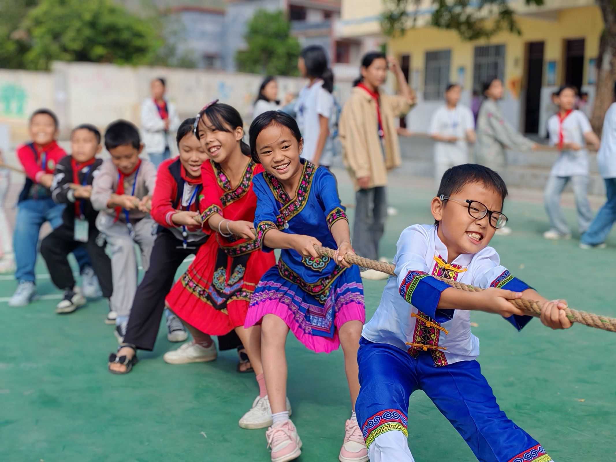 组织引领强根基,构建民族团结进步新格局。在金湾小学的校园里,铸牢中华民族共同体意识正以生动鲜活的实践浸润着各族学生的心灵。学校创新推出“石榴籽成长伙伴计划”,打破班级和民族界限,组建多民族混合小组,开展“民族文化互讲互学”活动,如组织汉族师生讲述春节习俗,壮族师生分享“广西三月三”歌圩的由来,京族师生介绍哈节的传统等,每一位师生都成为民族文化的传播者和倾听者。在开展“民族体育嘉年华”中,学校将民族传统体育作为融合载体,板鞋竞速、抛绣球、跳竹竿等传统民族竞技项目成为亮点,各族学生混合组队,在竞技中默契配合。丰富多彩的活动既锻炼了学生们体魄,更让“中华民族一家亲”的理念深入人心。