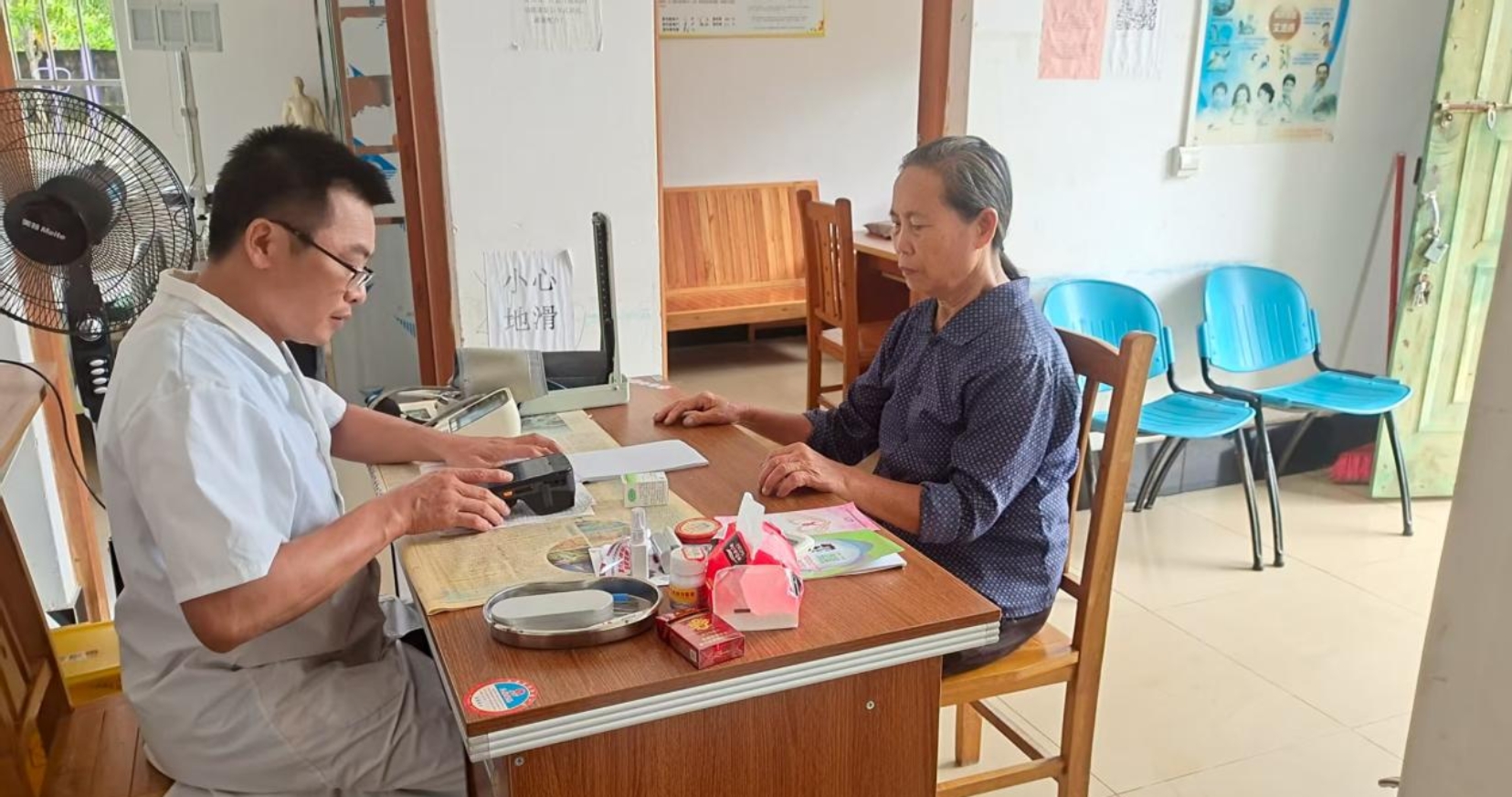 大菉镇山中村村医为参保群众使用村医通进行报销