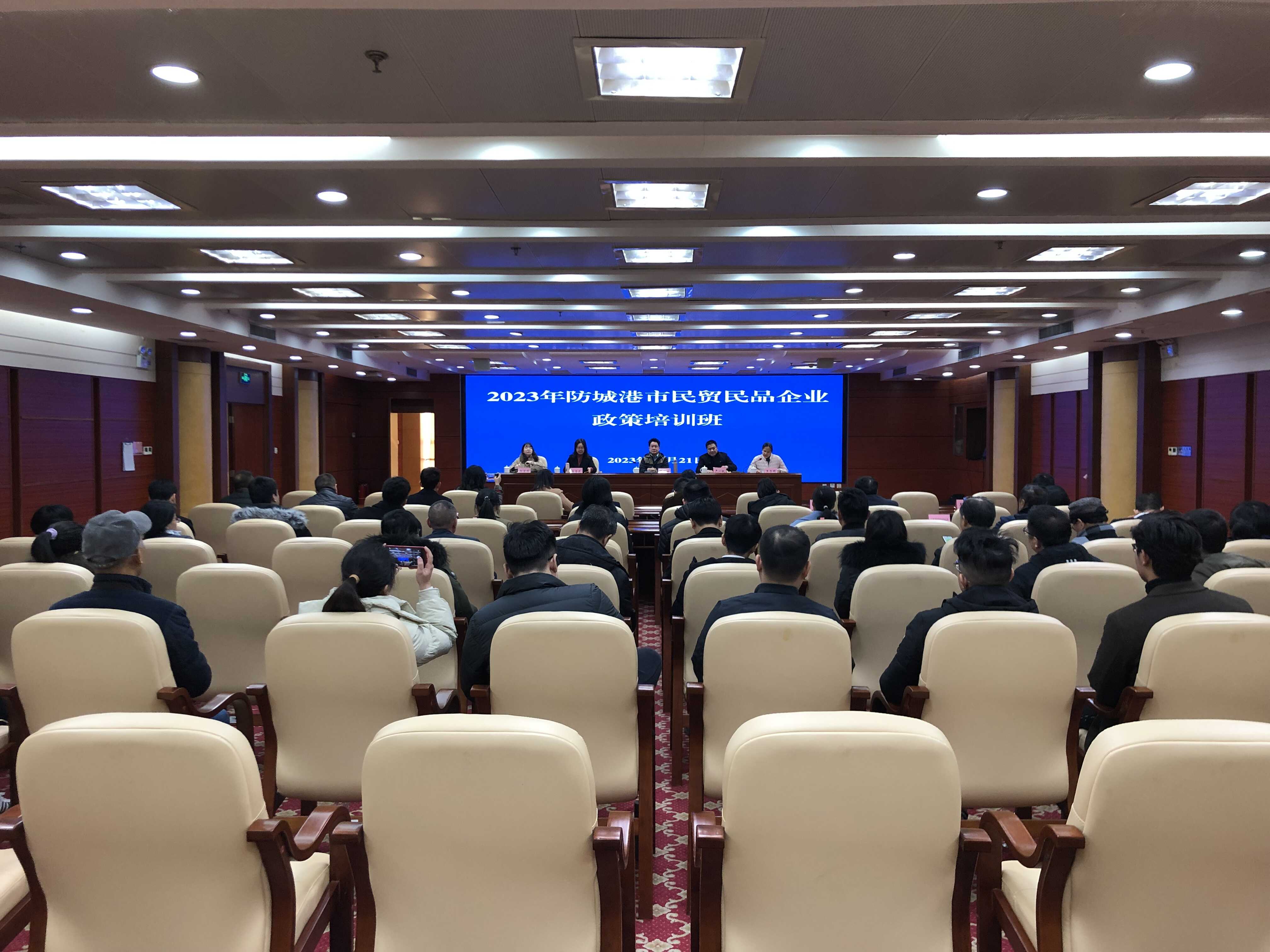 12月21日,防城港市民宗委联合市财政局、人民银行防城港市分行举办2023年民贸民品企业政策培训班。市、县(市、区)民宗、财政、人民银行相关领导及业务科室负责人,企业负责人等共67人参加培训。市民宗委党组书记、主任严一帆作开班动员讲话。