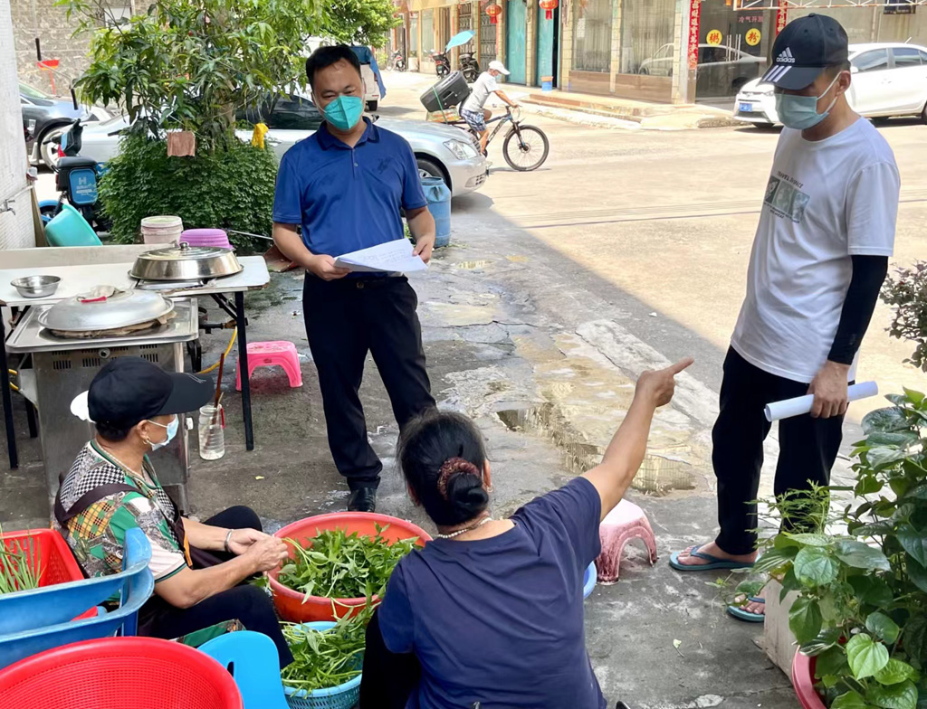 防城港市农业农村局总农艺师、深沟社区第21网格网格长何志敏带领网格员走访居民