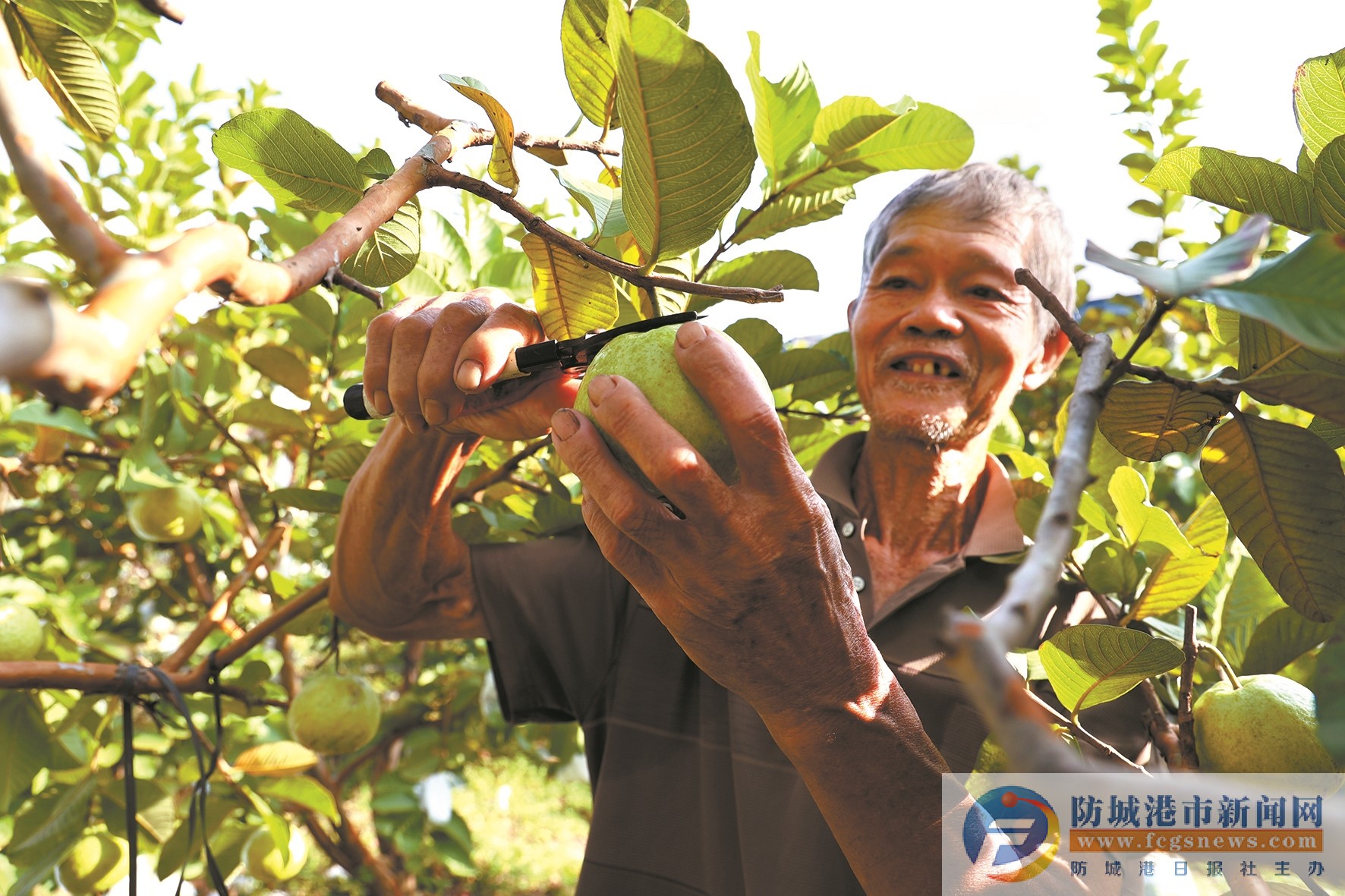 那天花村采摘园老板是80岁的村民石策,他根据订单精心挑选成熟的芭乐(见上图),脸上洋溢着丰收的喜悦。石老伯介绍,芭乐生长周期短、易管护、经济效益高。这4亩红宝石芭乐树是2019年从台湾引进的新品种,从2021至2022年开始产量逐年递增。果实长到拇指大小时,便开始套袋以防护虫害,确保其无公害、有机且健康。芭乐树每年有两季收成,分别为2至4月、7至9月,今年产量预计1000至1500公斤。