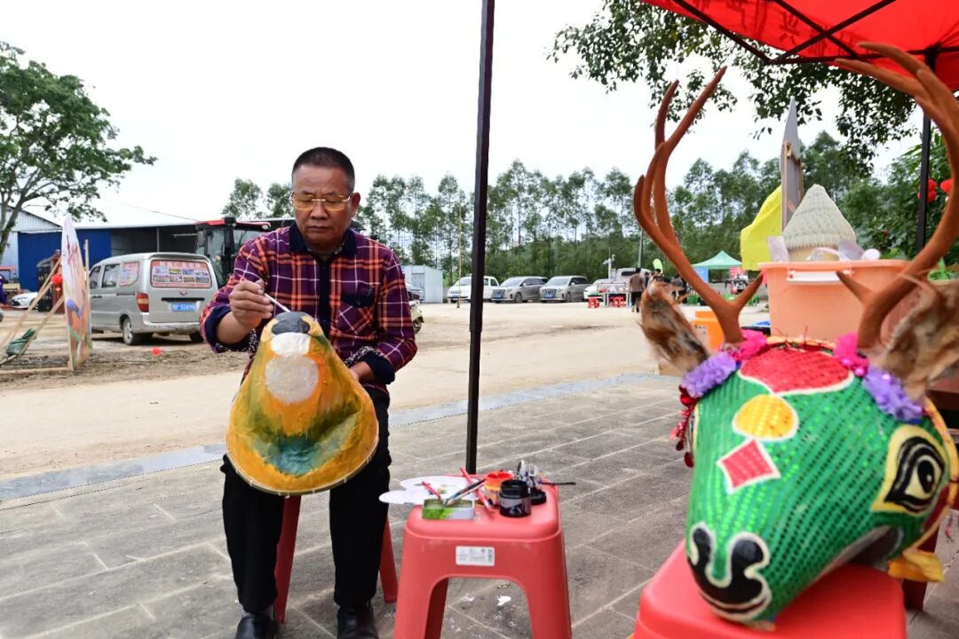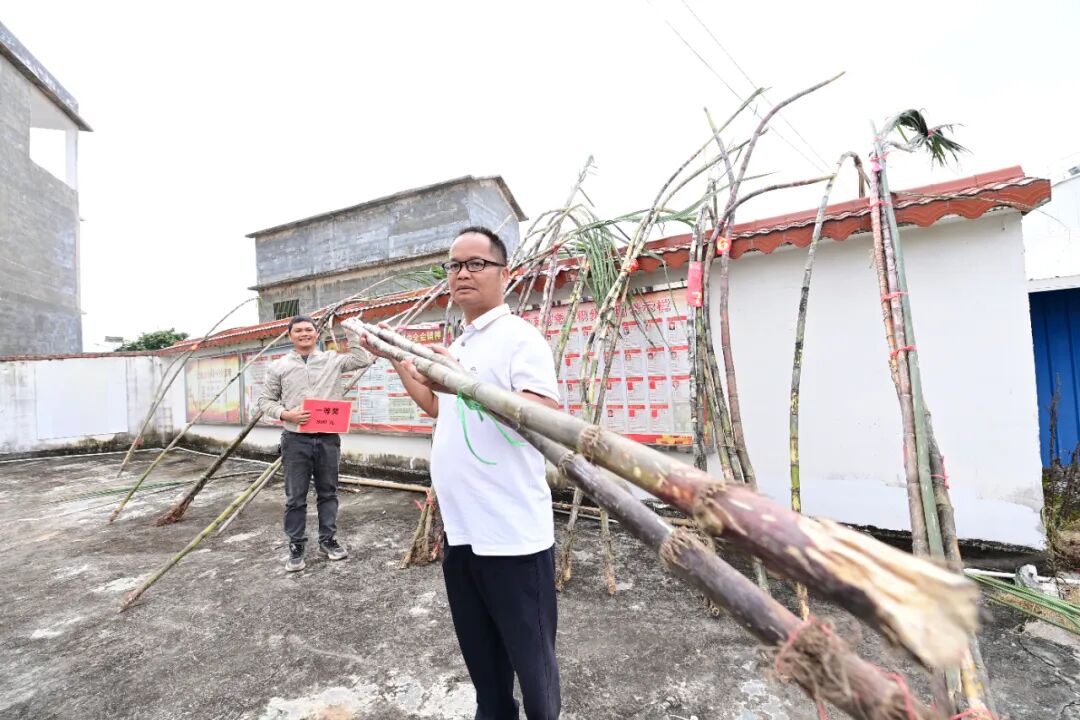 10:30起,“赛、庆、品、智”四大主题功能区同步开启,现场氛围被推向高潮:“赛丰收” 区里,甘蔗擂台赛的选手们比出“蔗王”甜度,收割稻谷比赛的农户们动作利落,徒手抓鸭的欢笑声裹着泥土香; “庆丰收” 区的文艺展演、农产品创意走秀,把玉米、香糯“穿”在身上,知识问答里满是“三农”新政策;“品丰收” 区的“丰收大集”美食街飘着糯米饭、甘蔗汁的香气,活动让老人孩子都攥满了小礼品; “智丰收” 区的新农具、传统手工艺展示,一边是无人机植保设备的科技感,一边是“磨福舞鹿”的老手艺,古今碰撞里藏着乡村发展的新活力。