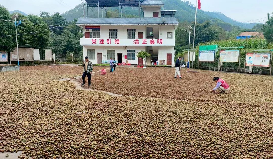 米强村地处十万大山腹地,山多地少,过去村民守着青山愁出路。近年来,村里瞄准山茶油市场潜力,流转荒坡连片种植油茶树,如今已发展至500亩规模。“这些油茶树都是2018年种下的,今年进入丰产期,鲜果颗粒匀、出油率高,到昨天(16日),已经采收近7万斤鲜果运到村委大院,预计能榨1600多斤高品质茶油,按市场价算能卖约8万元!”该村党支部书记周建胜坐在油茶树下,随手剥开一颗油茶果,饱满的果子泛着油光。