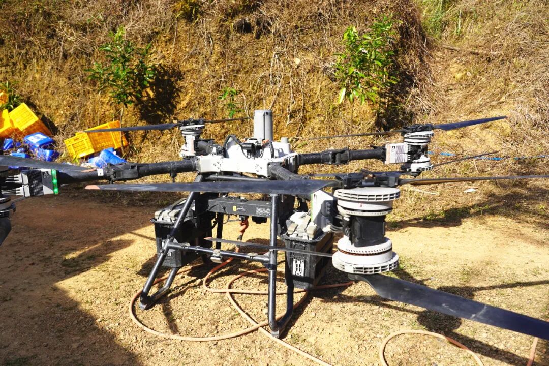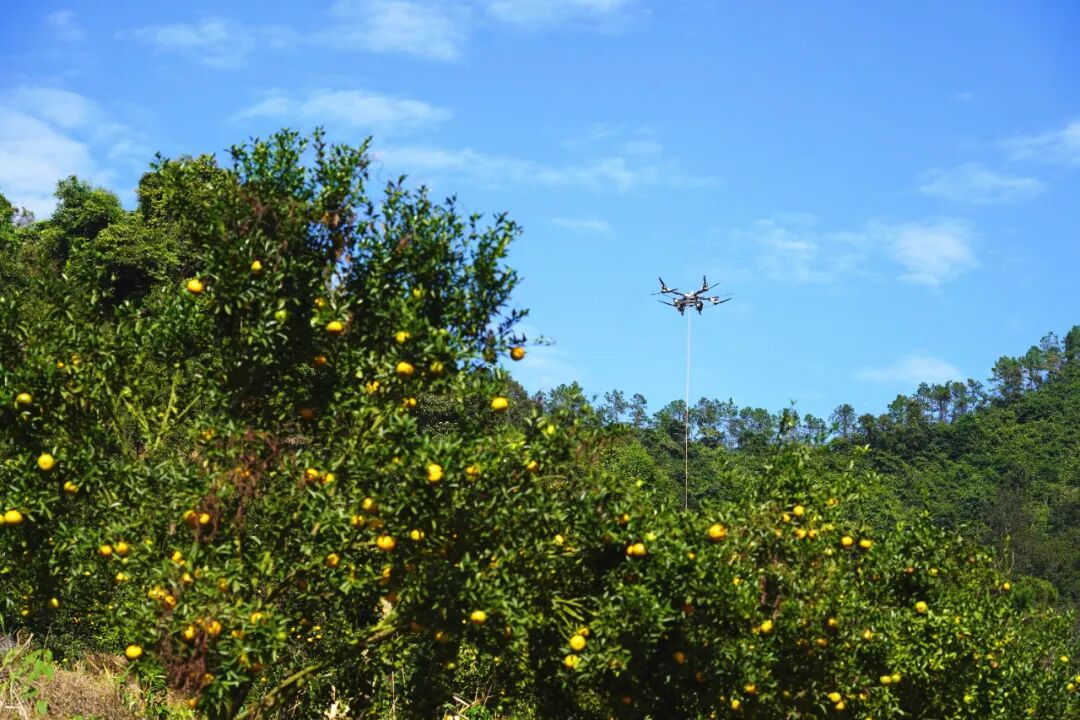 防城区:科技赋能陈皮柑采摘 无人机吊运让山林硕果“飞”下山