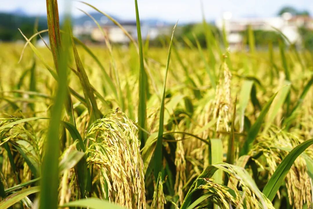 ▲金黄的稻谷在阳光下摇曳,宛如一片片流动的金海。