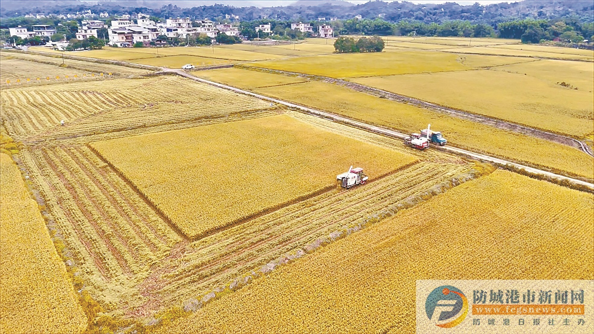 初冬时节,防城区那良镇水稻核心示范区的晚稻进入成熟期。连日来,农户们开展晚稻收割作业,田野上呈现出一派丰收的喜人图景。