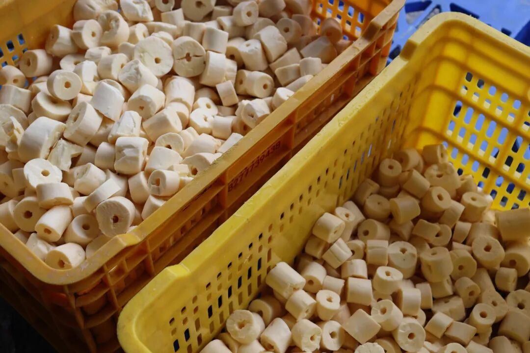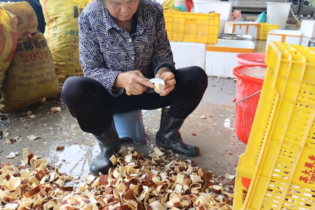 在现场可见,采收后的木薯被转运至合作社加工点,去皮、清洗、切割、打包等生产线高效运转,工人们各司其职、有条不紊,将新鲜木薯加工成标准化产品,确保第一时间发往各地市场。从田间采收、集中收购到加工、销售,一条完整的木薯产业链已初步成型。目前,那梭镇黄心木薯已构建起多元化销售渠道,通过大型连锁商超、电商平台等渠道,畅销全国、远销海外。
