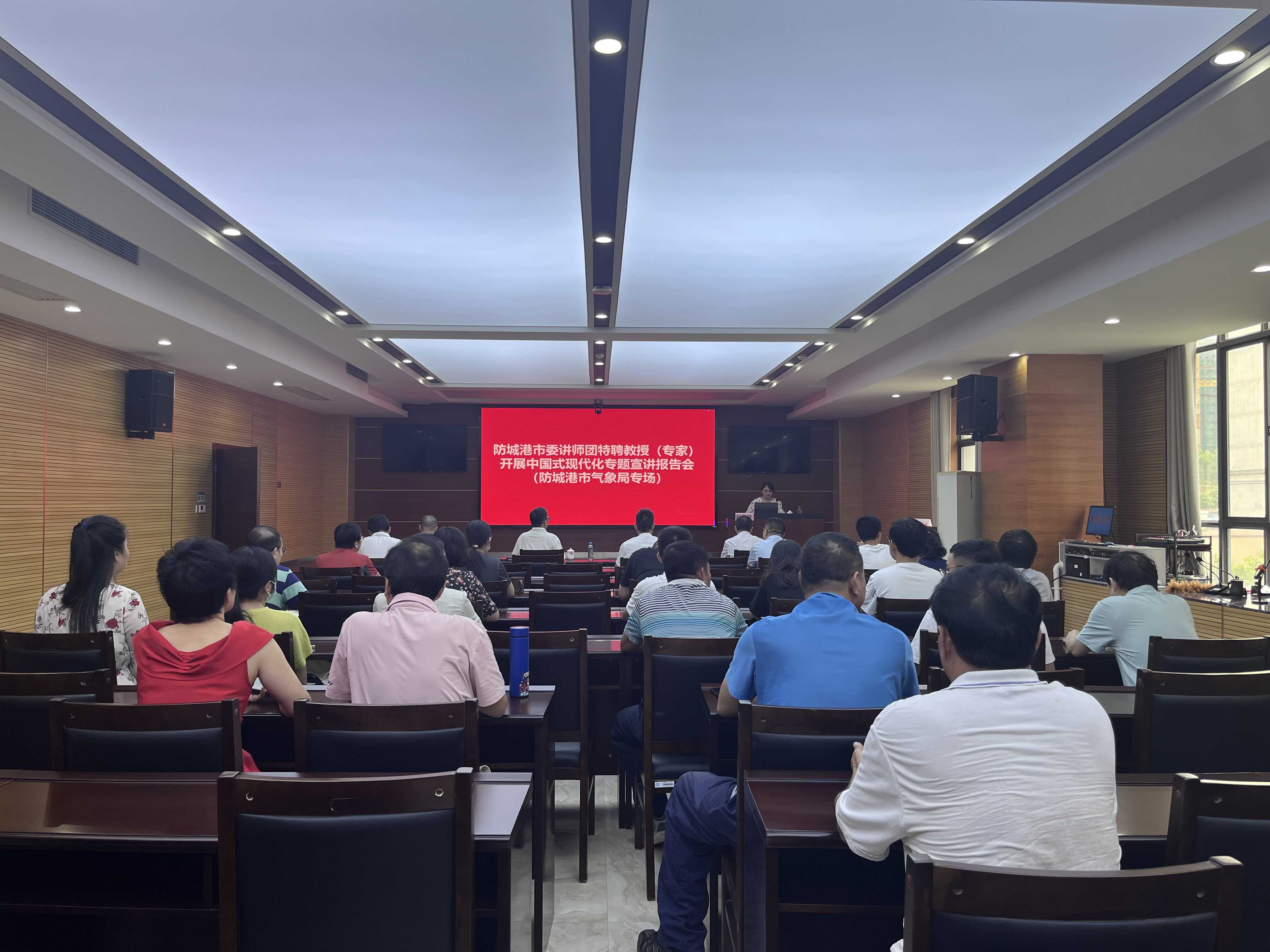 为深入学习宣传贯彻习近平新时代中国特色社会主义思想和党的二十大精神,贯彻落实全国两会精神,凝聚起建设中国式现代化的磅礴力量,9月11日,防城港市气象局举办中国式现代化专题宣讲活动,防城港市委讲师团特聘教授(专家)、市委党校党史党建教研室负责人、讲师赵艺玲受邀做专题宣讲。防城港市气象局全体干部职工参加宣讲报告会。