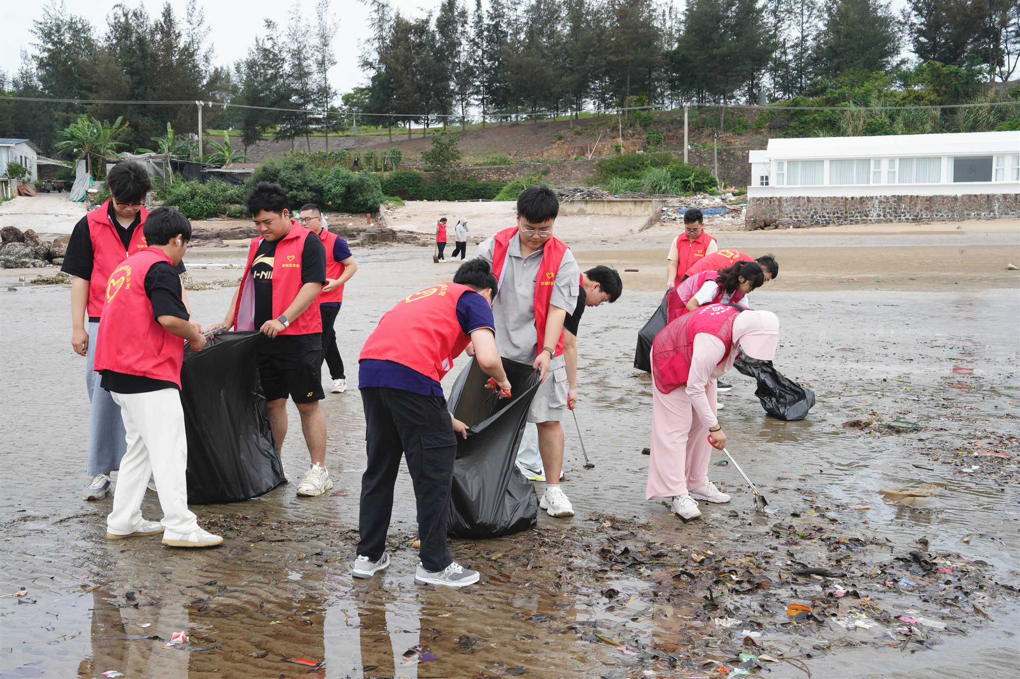 当天下午,联合团队前往江山镇海滩开展环保志愿服务。青年们手持工具,分工协作,对海岸线及滩涂区域进行“地毯式”清理,将废弃渔网、塑料垃圾及隐蔽在礁石缝隙中的杂物逐一清除。经过一个多小时的努力,海滩环境焕然一新,用实际行动践行了绿色发展理念。