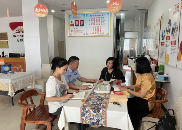 图为在防城港市港口区乐康保健品经营部党支部(团支部)调研