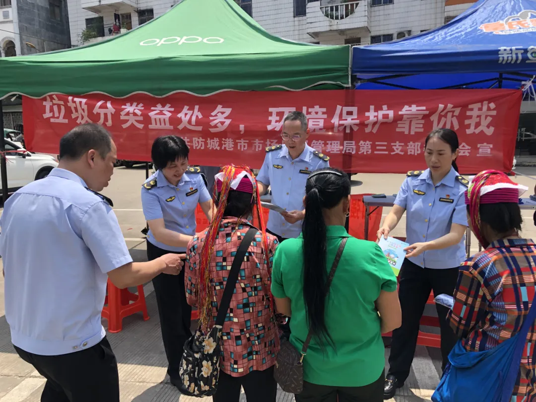 活动期间,防城港市市场监管局的党员同志向群众发放垃圾分类知识宣传资料,并耐心讲解垃圾分类的意义、作用以及相关知识,增强群众对垃圾分类的认识,积极引领群众参与垃圾分类。此次活动共发放宣传资料260份,现场为30余名群众答疑解惑。
