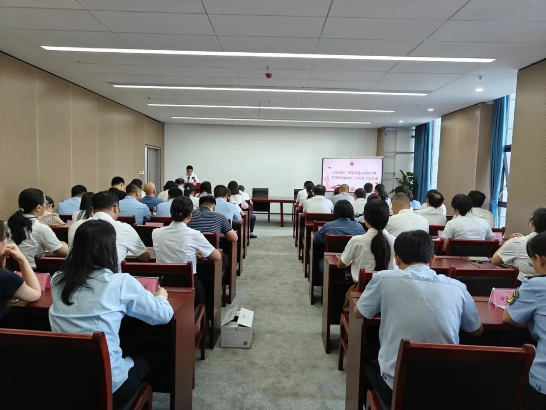 在“书香悦读励初心”读书分享环节,市市场监管局派驻市民中心企业注册登记窗口的党员代表何超群同志,聚焦市场监管系统行风建设,围绕2024年7月1日起施行新修订的《中华人民共和国公司法》展开分享,充分展示市场监管党员干部扎实的业务知识和新时代党员干部昂扬向上的精神风貌。