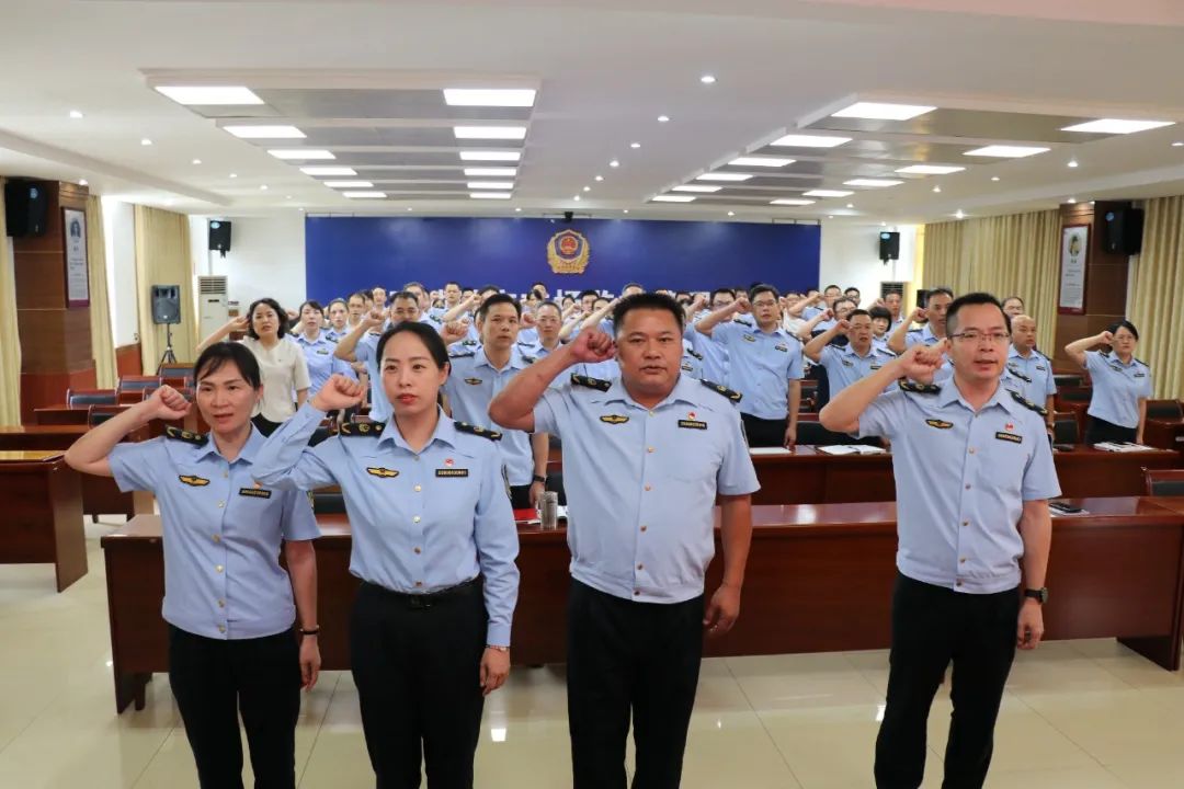 在重温入党誓词环节,全局党员干部在徐瑞晗书记的带领下,举起右手,面对鲜红的党旗,精神饱满地庄严宣誓:“我志愿加入中国共产党……”誓言铿锵有力,深切表达了市场监管部门广大党员干部对党的无限忠诚,展现了在“市监315 党建海边山”党建品牌号召下的干事创业决心。