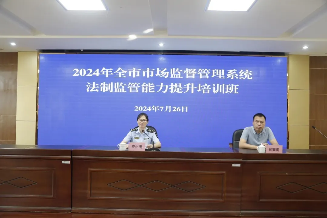 7月26日,防城港市市场监管局举办2024年全市市场监管系统法治监管能力提升培训班,培训班以视频会议形式召开,主会场设在防城港市市场监管局六楼会议室,分会场设在各县(市、区)市场监管局视频会议室。培训班由市市场监管局党组成员、副局长岑小鹰主持,全市各级市场监管部门全体执法人员共300多人参加了培训。