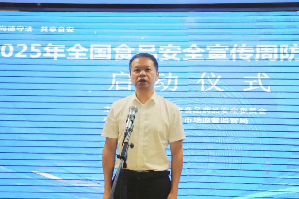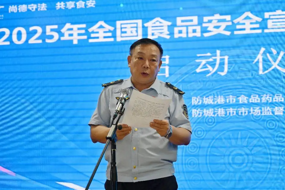 7月23日,由自治区食品药品安全委员会主办,以“尚德守法、共享食安”为主题的2025年全国食品安全宣传周广西主场活动正式启动。启动仪式采取线上线下相结合方式举行,主会场设在来宾市,防城港市、贺州市、河池市设分会场。防城港市人民政府副市长禤东参加分会场活动,并宣布防城港活动启动,市人民政府副秘书长鲍基石主持活动。