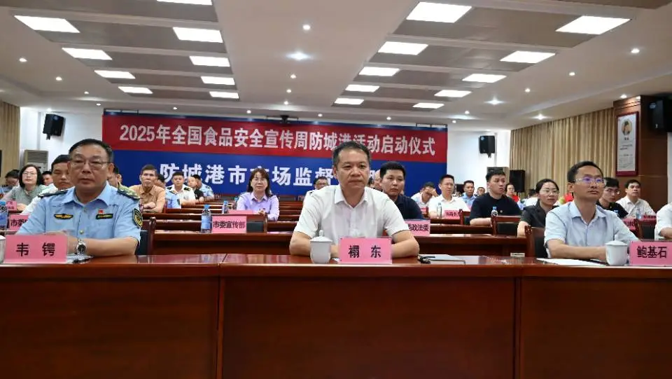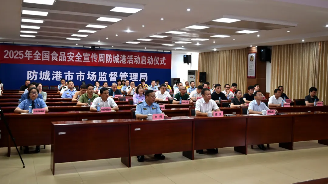 活动开始,防城港市分会场与会人员集中收听收看主会场相关活动,禤东副市长代表防城港市进行视频经验交流发言。主会场启动仪式结束后,防城港市分会场紧接着举行2025年全国食品安全宣传周防城港活动启动仪式。