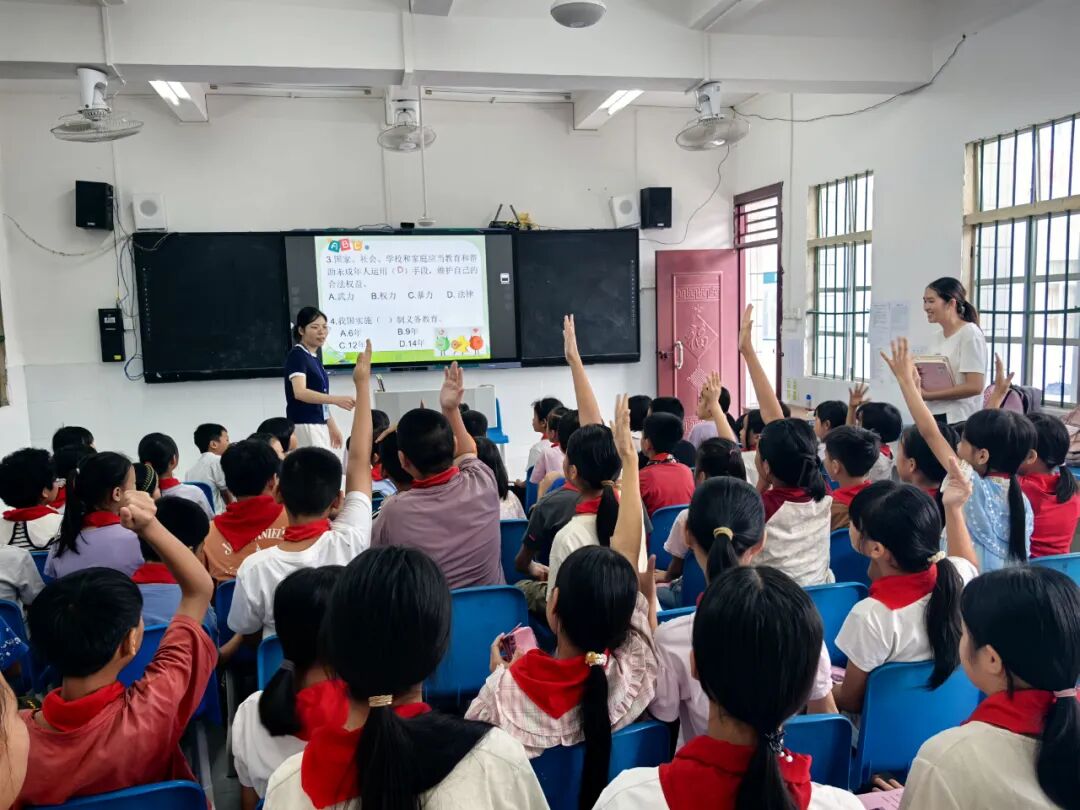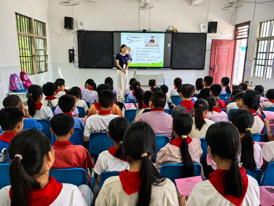为加强青少年法治宣传教育,引导未成年学生增强法治观念和自我保护意识,2025年9月5日上午,扶隆司法所深入扶隆镇南江小学开展“开学第一课”法治进校园活动,为全校学生送去一堂生动鲜活的法治启蒙课。
