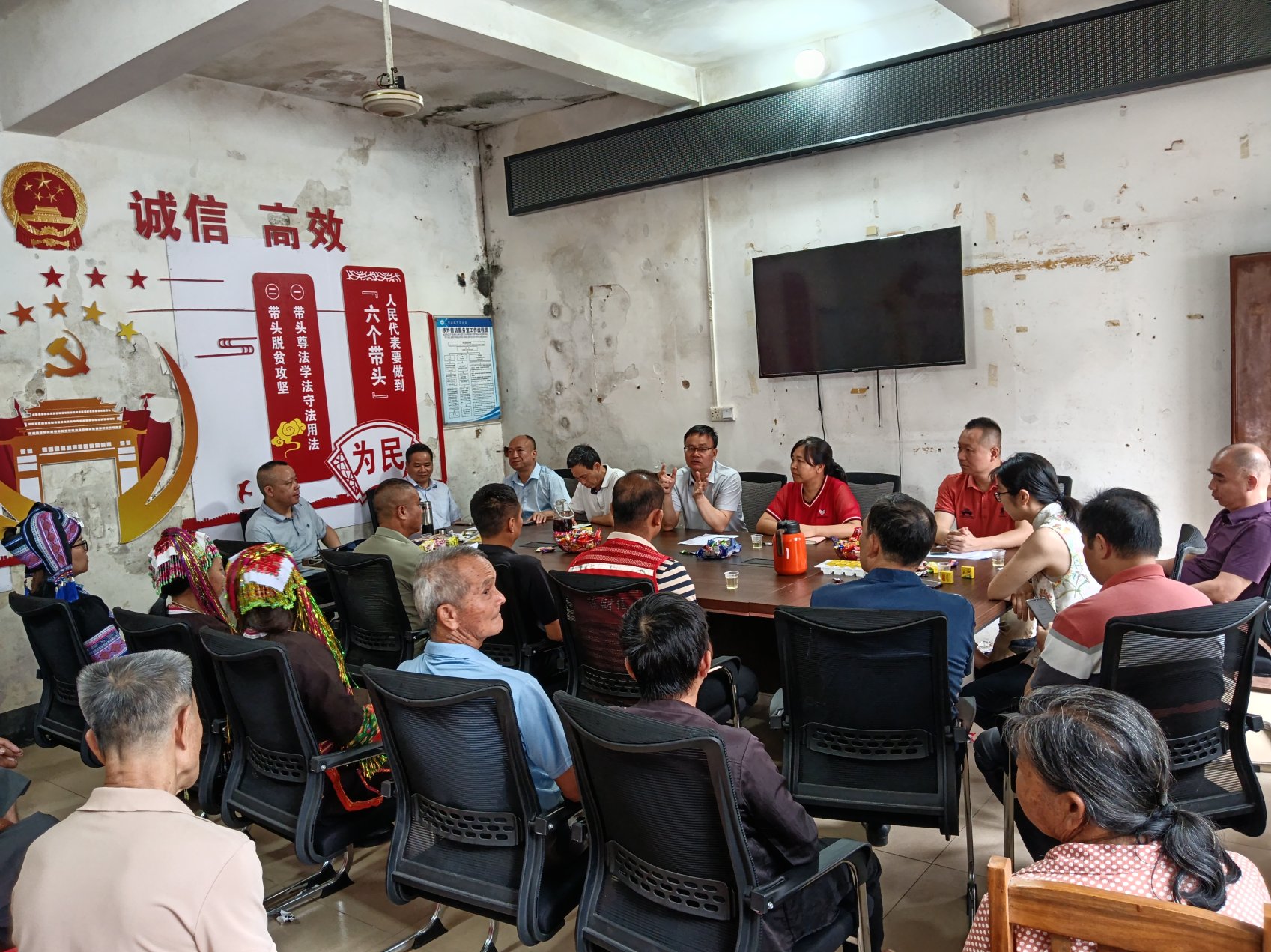 慰问组首先在板兴村党群服务中心与村“两委”干部,驻村第一书记、工作队员以及市国动办结对帮扶对象等召开座谈交流会。会上,该村对市国动办今年结对以来的帮扶尤其是出资改善村委硬件设施等方面的大力支持表示感谢,并着重汇报了2025年以来全村乡村振兴工作重点、难点情况。会上,市国动办领导认真倾听,并就板兴村产业发展等问题与大家深入探讨,该办领导强调,市国动办将始终以“准军事化”工作作风落实帮扶责任,以实际行动巩固拓展脱贫攻坚成果,助力乡村全面振兴。会上,市国动办领导要求驻村工作组要聚焦群众急难愁盼,把政策宣传到位、资源对接精准、增收举措落地,真正为乡村发展办实事、解难题。双方还围绕村容提升、产业提质等后续帮扶计划及民族团结等工作展开深入研讨。