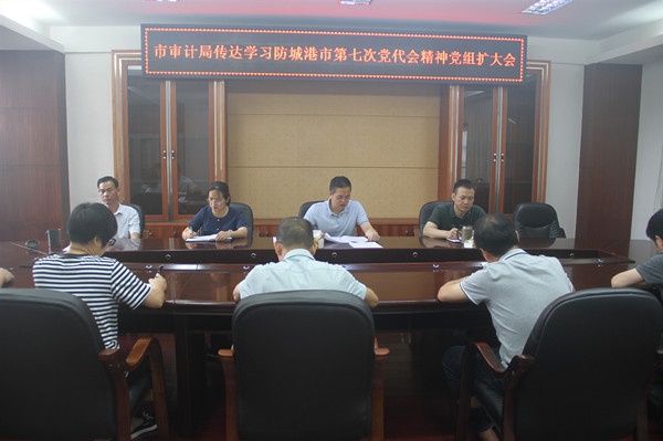 防城港市审计局召开党组扩大会,传达学习市第七次党代会精神。