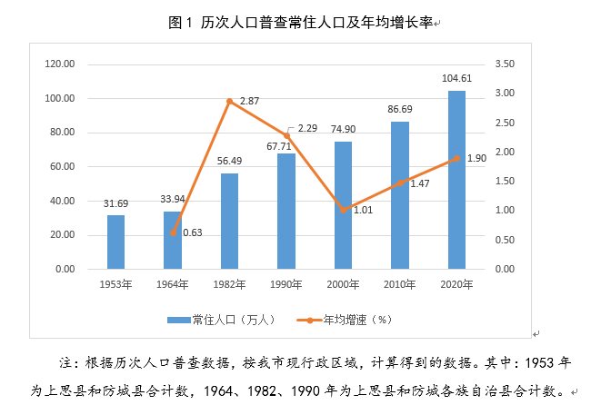 根据《中华人民共和国统计法》《全国人口普查条例》规定和《国务院关于开展第七次全国人口普查的通知》(国发〔2019〕24号)要求,我国进行了第七次全国人口普查[2]。一年多以来,在以习近平同志为核心的党中央坚强领导下,在市委市政府统一部署和领导下,在全市各级普查机构和普查人员的共同努力下,在广大普查对象的积极配合下,目前已圆满完成普查现场登记和普查主要数据的汇总工作。根据第七次全国人口普查结果,现将2020年11月1日零时防城港市人口的主要数据公布如下: