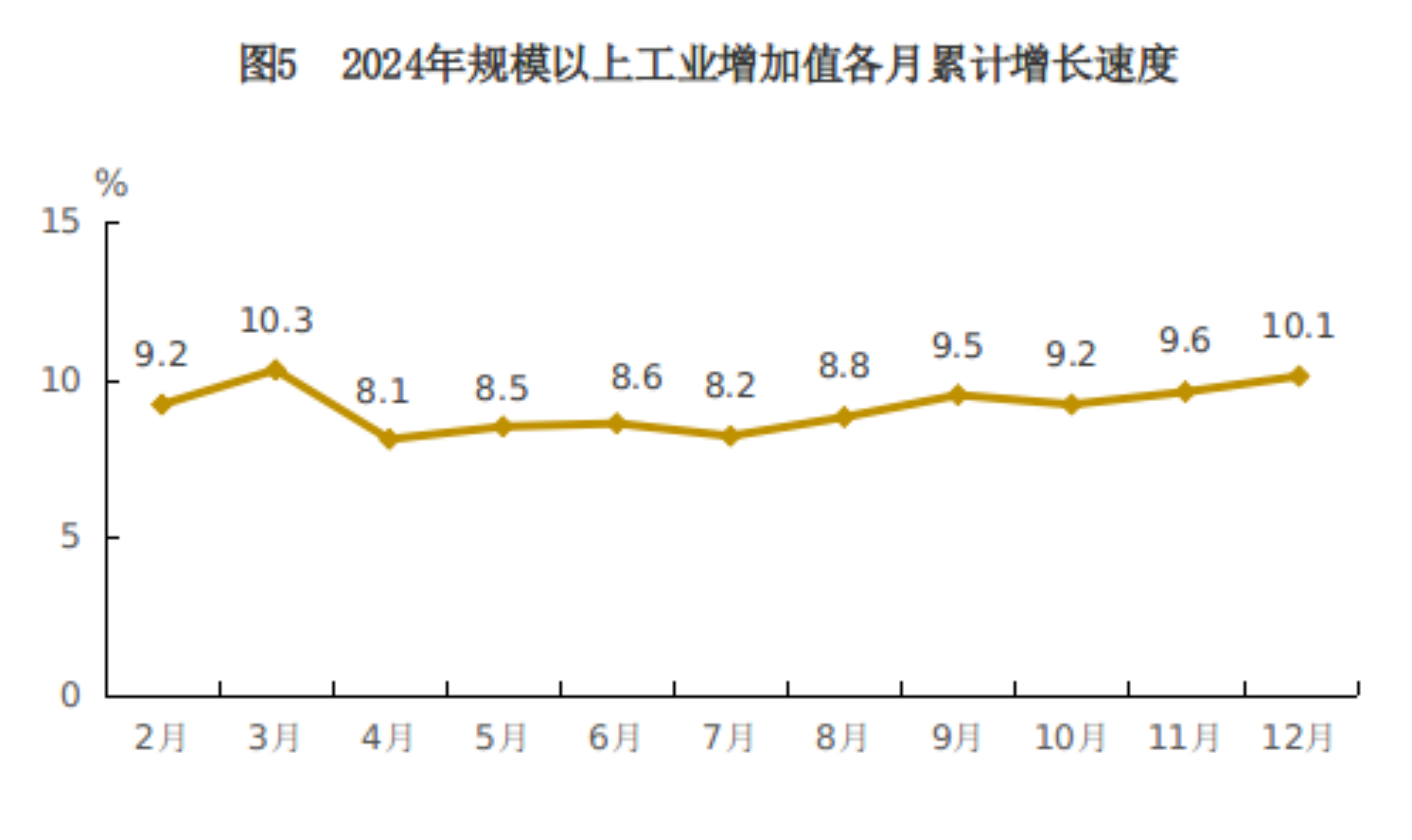 规模以上工业中,从轻重工业看,轻工业增加值比上年增长5.3%,重工业增加值增长10.7%。