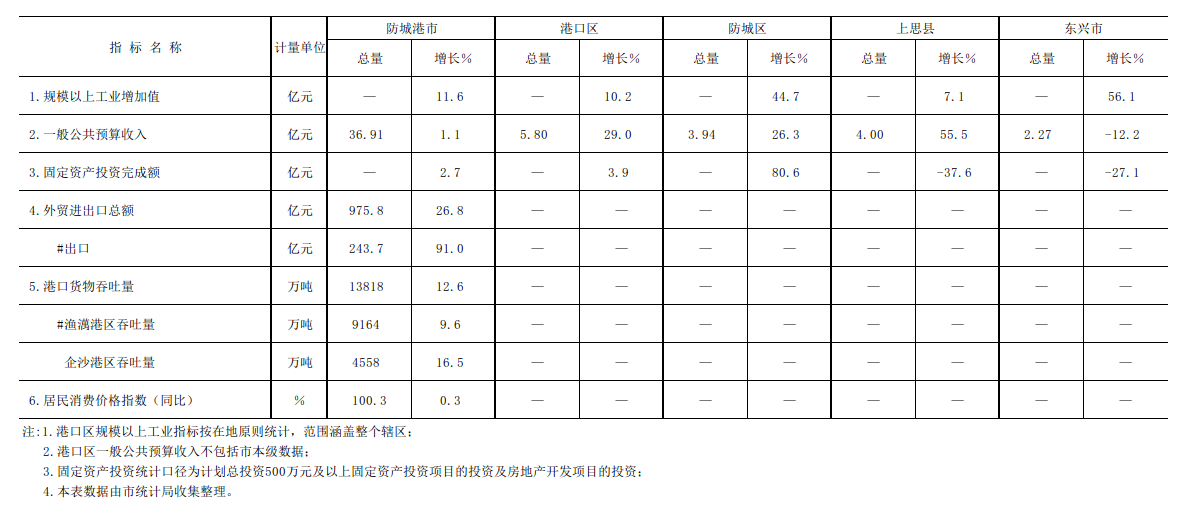 2025年1-8月防城港市及各县(市、区)主要经济指标完成情况表